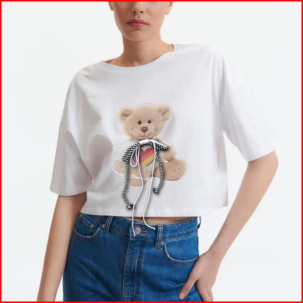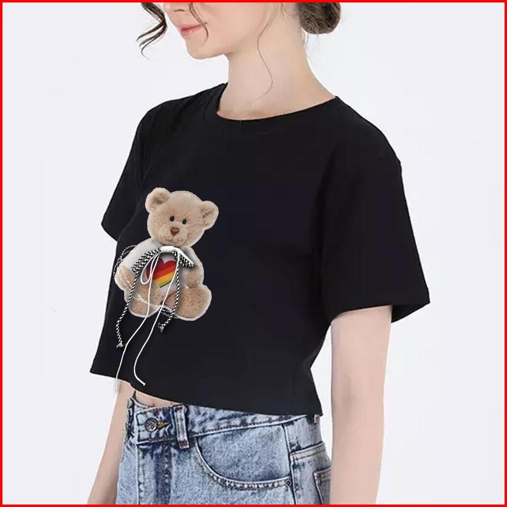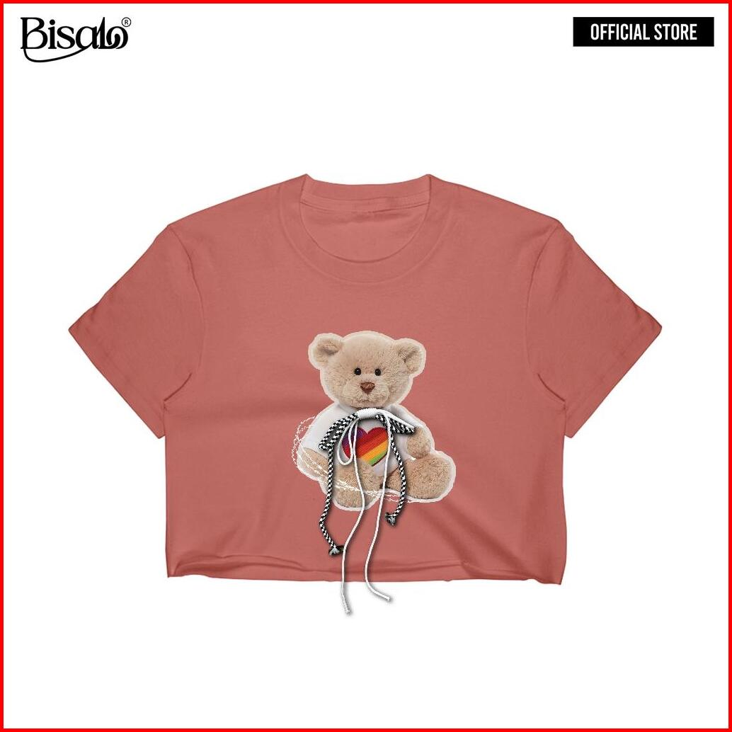 Bsl - 129 Bisalo Kaos Crop Oversize Polos Oversize Crop Top Motif Roping Bear V2 Cotton Combed Soft Printing T-shirt Wan