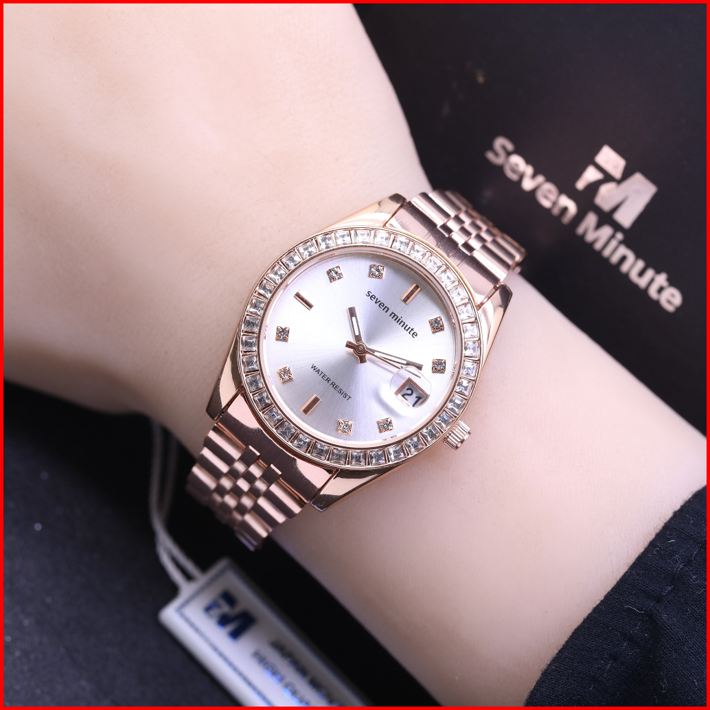 Jam Tangan Wanita Original Seven Minute M737 Tanggal Analog Watches Rantai
