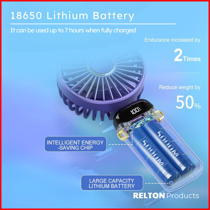 Kipas Angin Portable Mini Lipat Relton 1800mah Handheld Mini Fan Portable Rechargeable Led Display