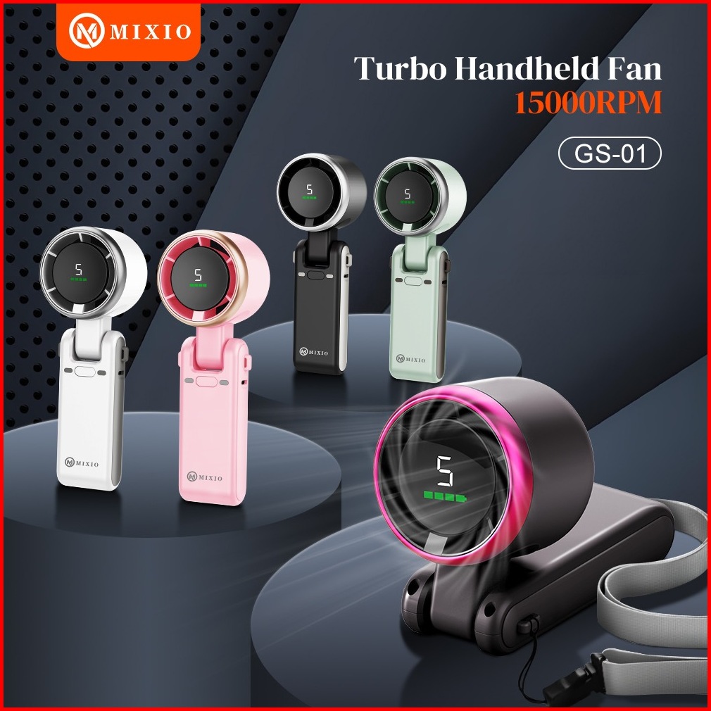 Mixio Gs-01 Kipas Angin Turbo Strong Portable Handheld Rechargeable Mini Fan Lipat High Speed 15000rpm