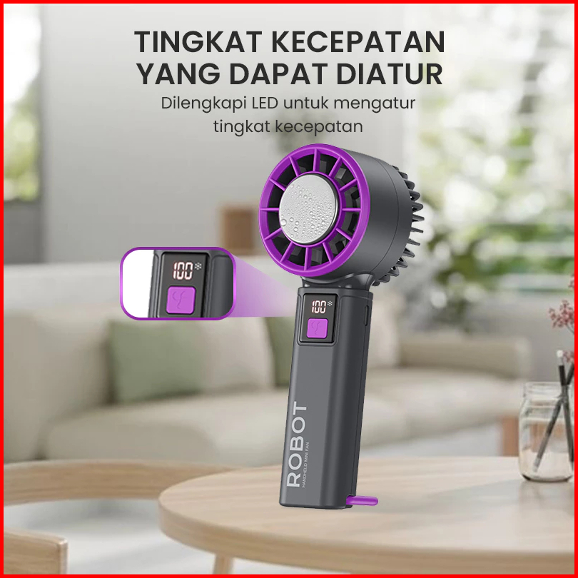 Robot Mini Fan Rt-hf01 Pro Kipas Angin Genggam Portabale Highspeed Led Display 2000mah Original Resm