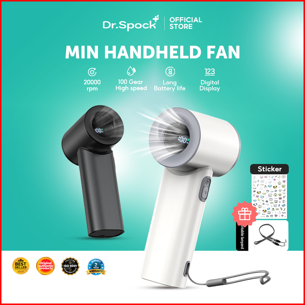 Dr.spock Mini Kipas Angin Turbo Strong Portable Handheld Rechargeable Mini Fan Lipat High Speed 20000rpm Hf30