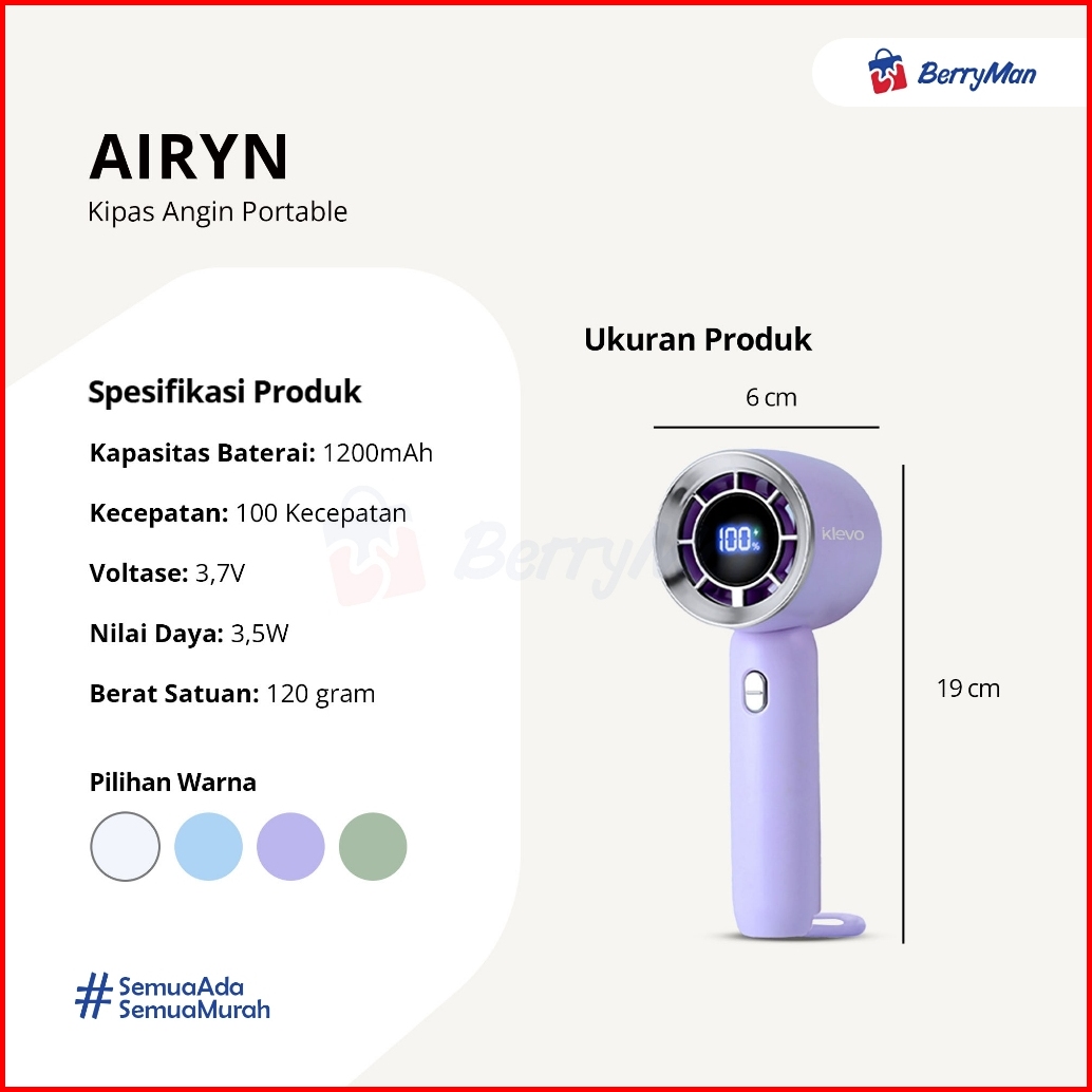Klevo Airyn Kipas Angin Genggam Turbo High Speed Mini Fan Strong Wind Portable Rechargeable