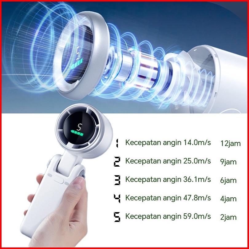 Kipas Mini Tangan Portabel Turbo Daya Besar Alat Pendingin Musim Panas Super Kencang 15000rpm Usb Rechargeable Mini Fan