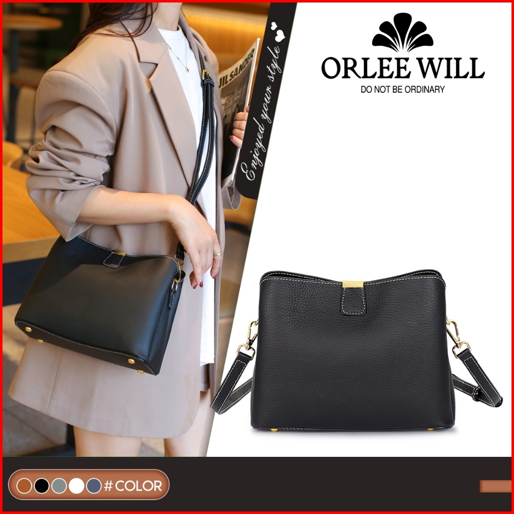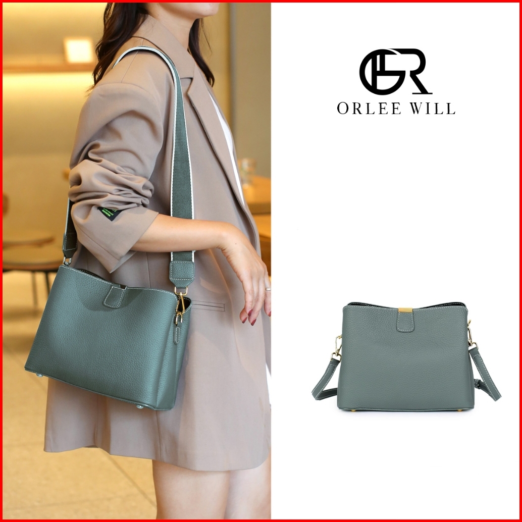 Orlee Will Tas Ember Kulit Wanita Kapasitas Besar Satu Bahu Miring Tas Tangan Silang Tas Kulit Sapi