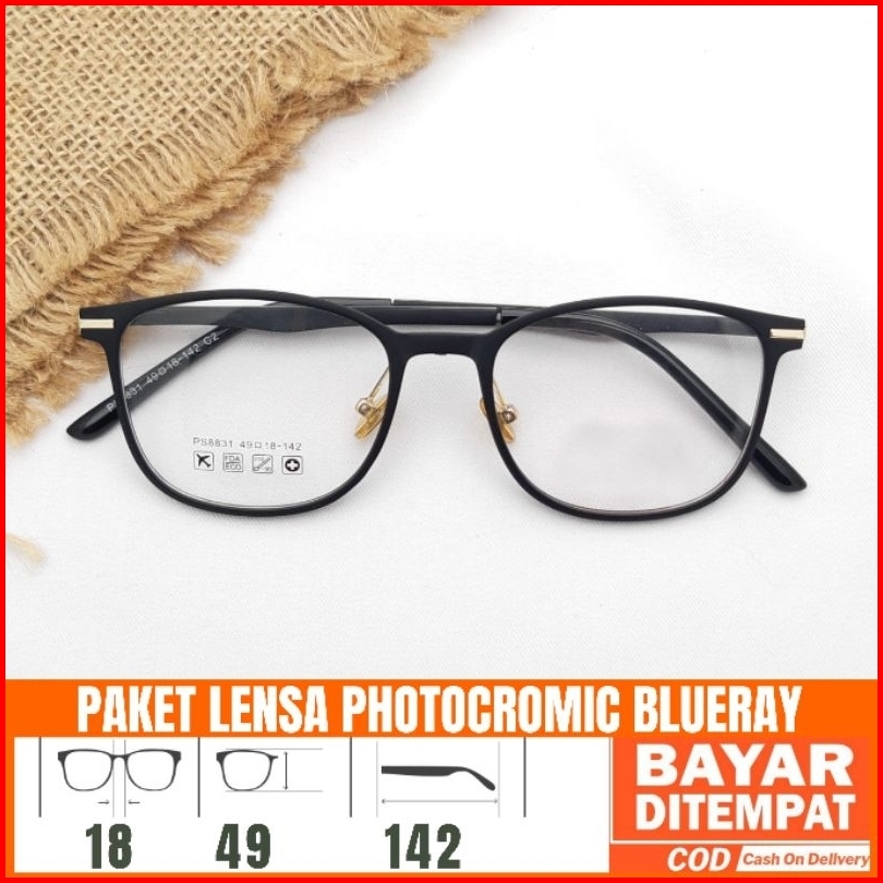 Paket Kacamata 8831 Lensa Antiradiasi Photocromic Blueray
