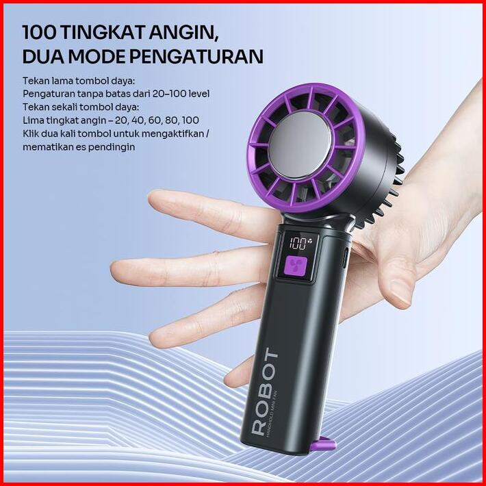Robot Kipas Angin Mini Genggam Led Display 2000mah - Robot Mini Fan Highspeed Handheld Rt-hf01 Pro Original - Garansi Re