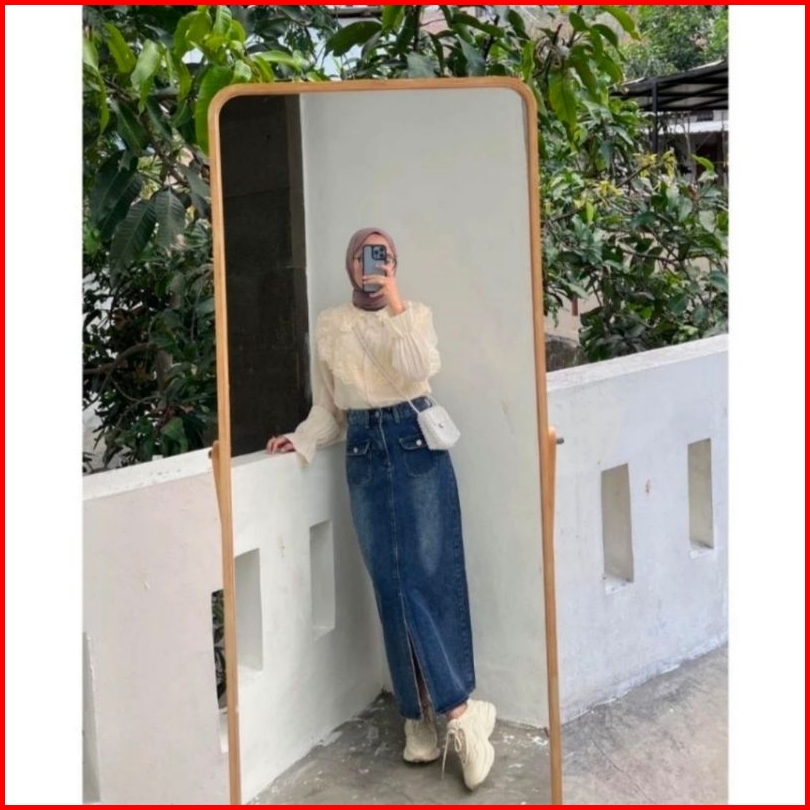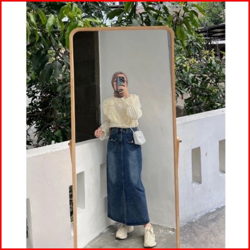 Praba Rok Jeans Skirt Panjang Wanita Tebal Minimalis