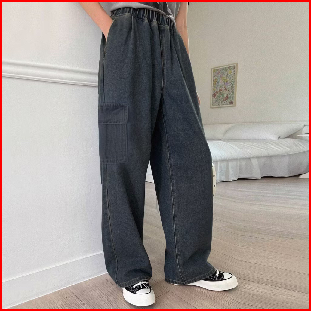 Celana Jeans Cargo Loose Wanita Pinggang Karet Bisa Sampai Bb 90kg