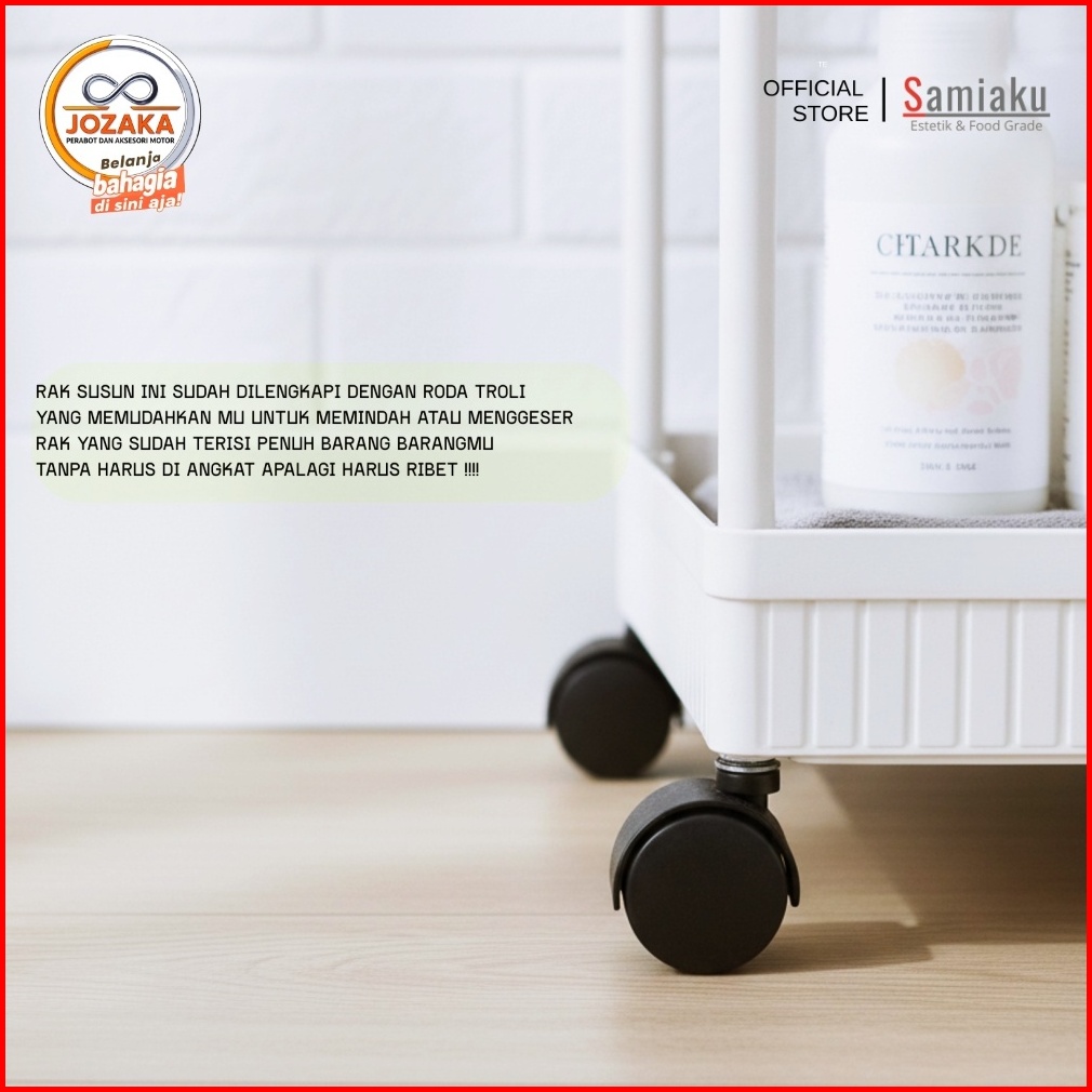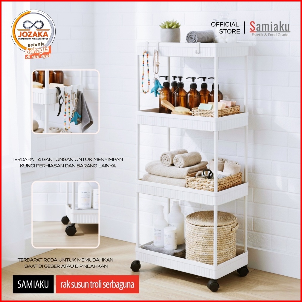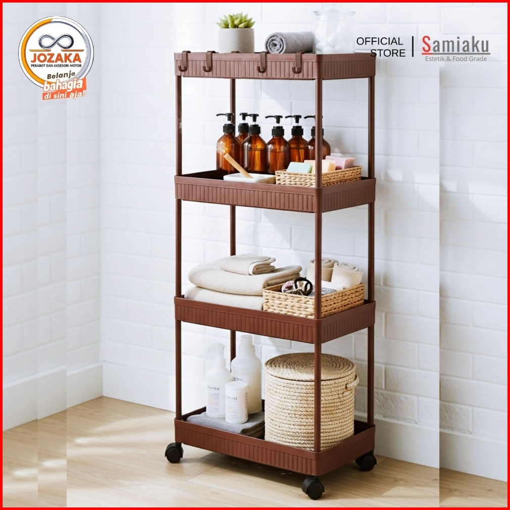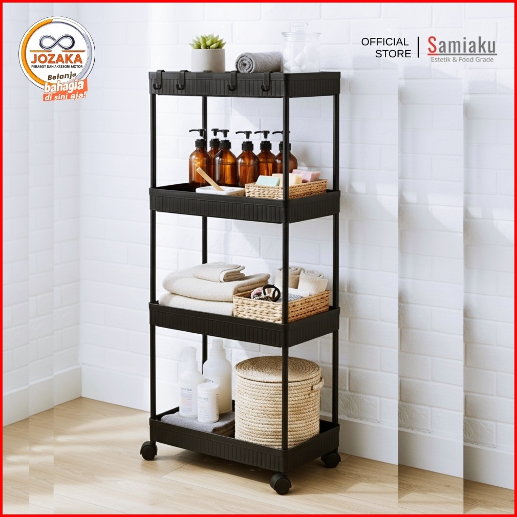 Samiaku Rak Susun Persegi Dapur Plastik 4 Susun Rak Yeye Serbaguna Dengan Roda