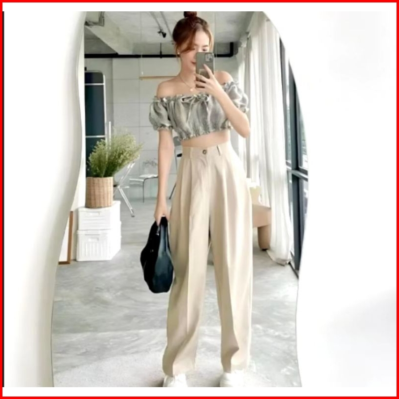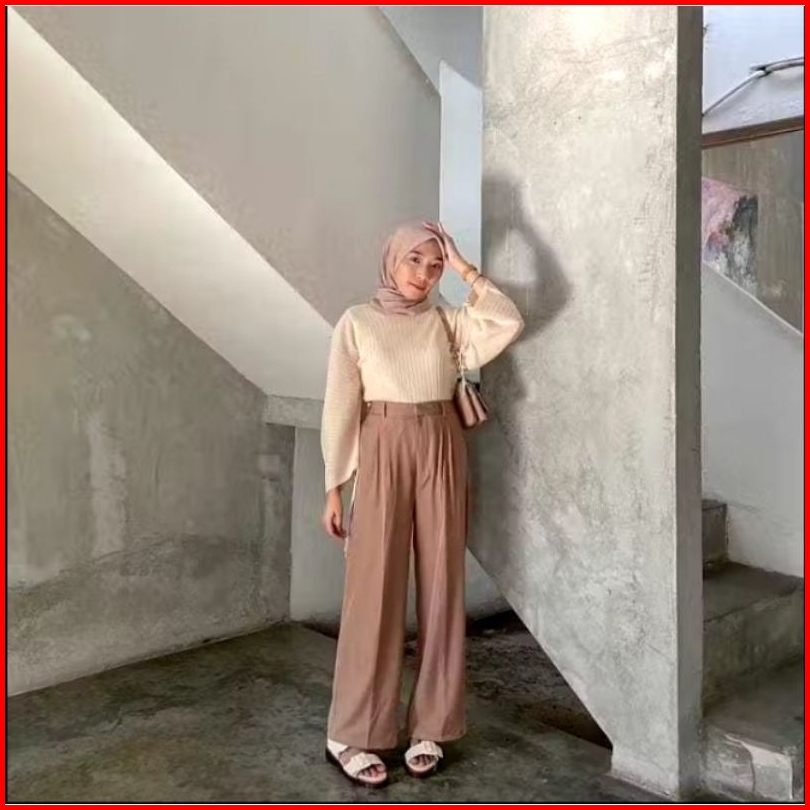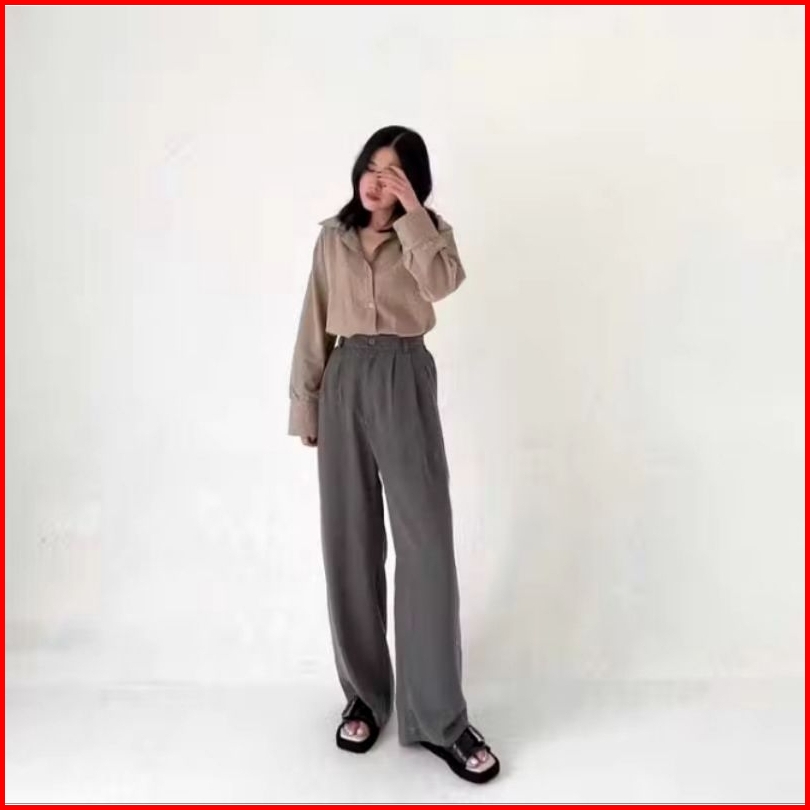 Celana Highwaist Loose Pants Trousers Celana Kerja Wanita Kantor Celana Anti Kusut Celana Kulot Wanita