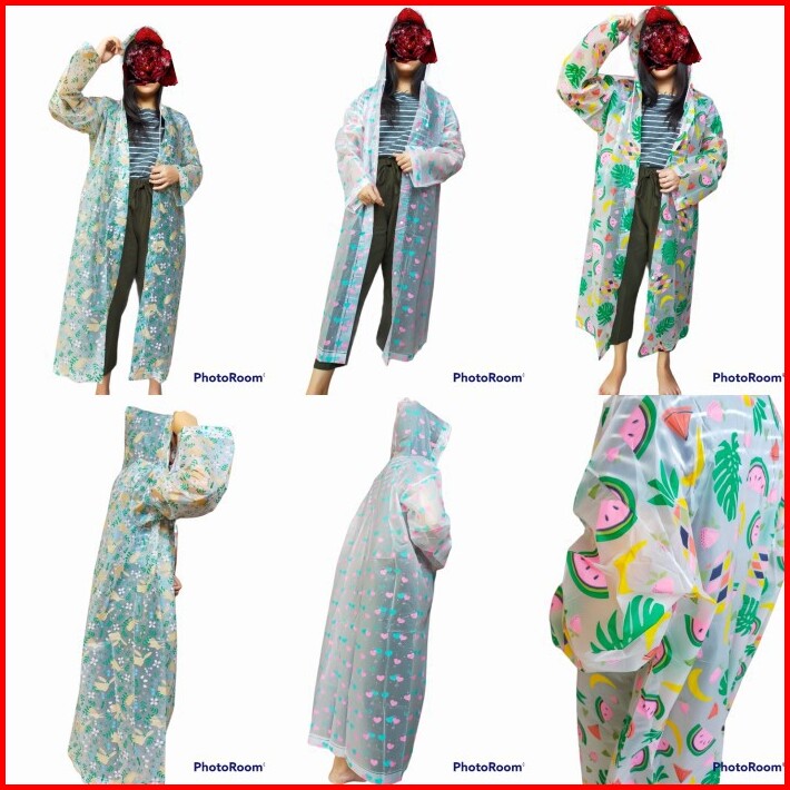 Jas Hujan Terusan Eva Dewasa Transparan Motif Kekinian