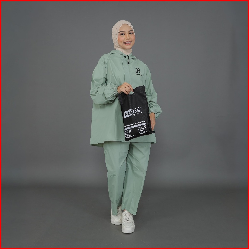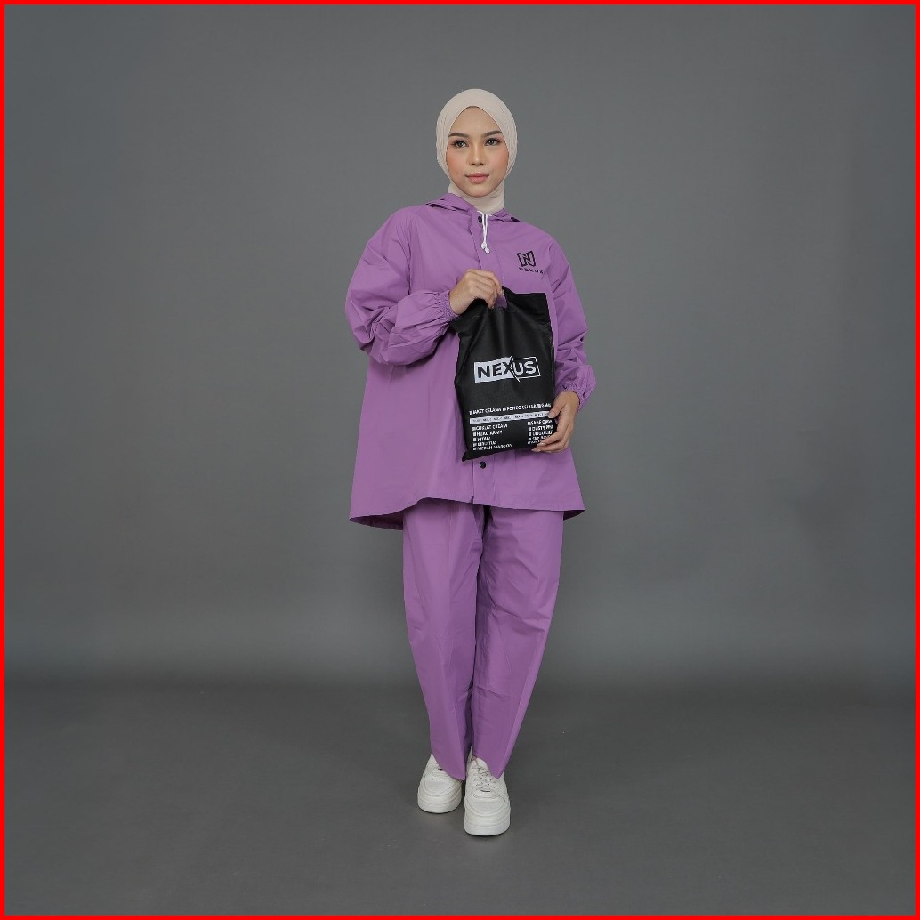 Nexus - Jas Hujan Wanita Lucu Aesthetic Stelan Jaket Celana Kain Pvc