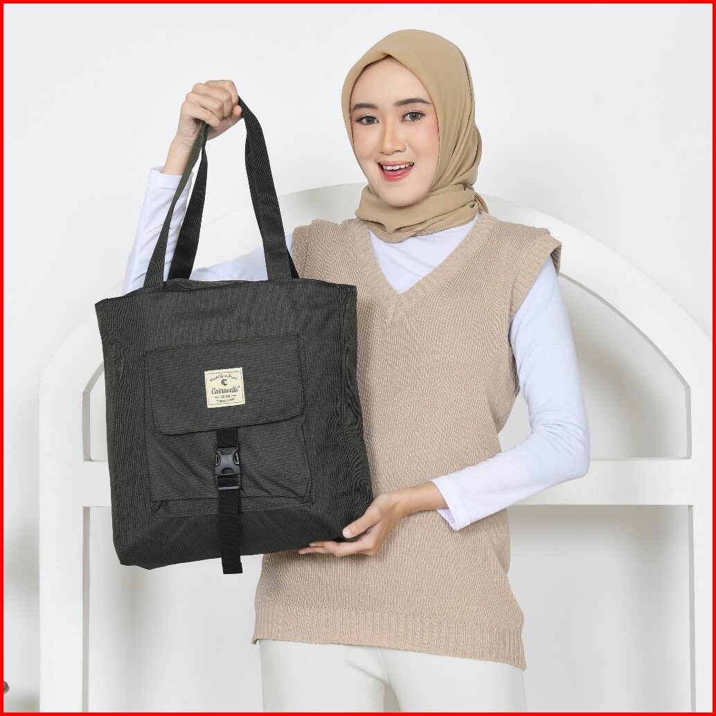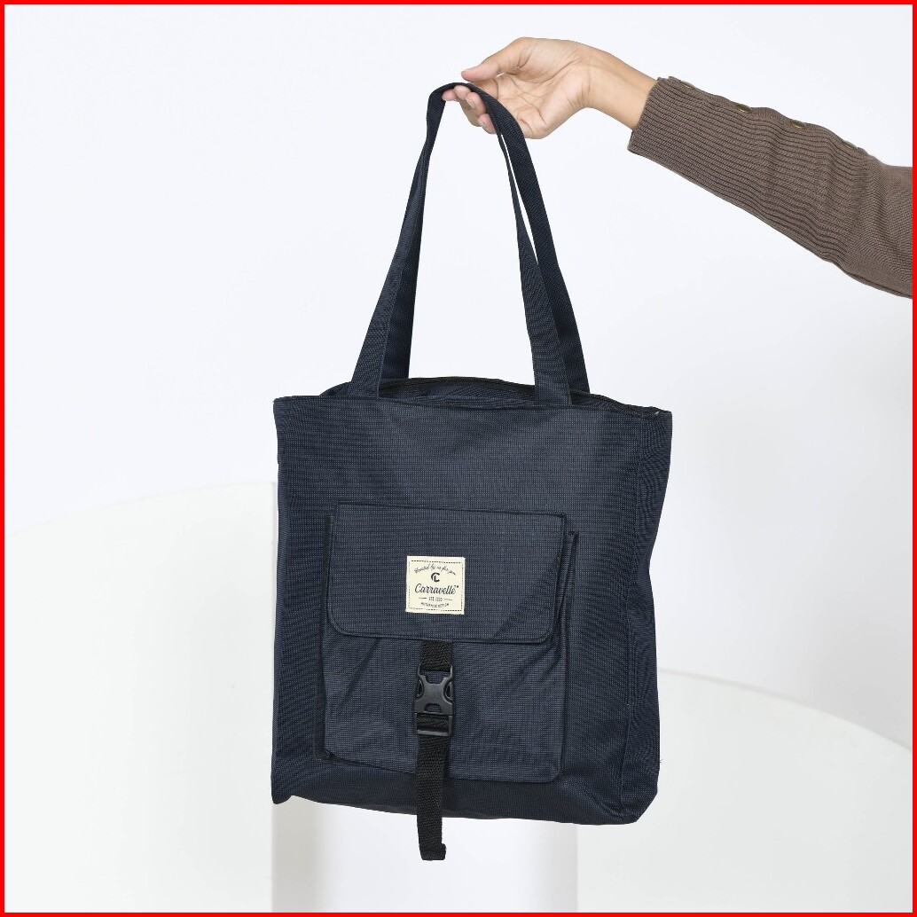 Ready Stock Totebag Kanvas Resleting Tas Kuliah Pria Wanita