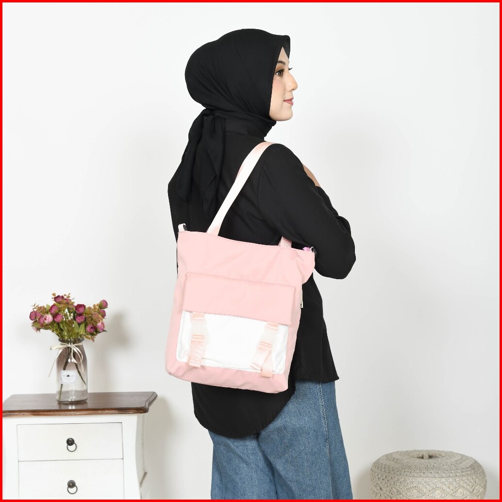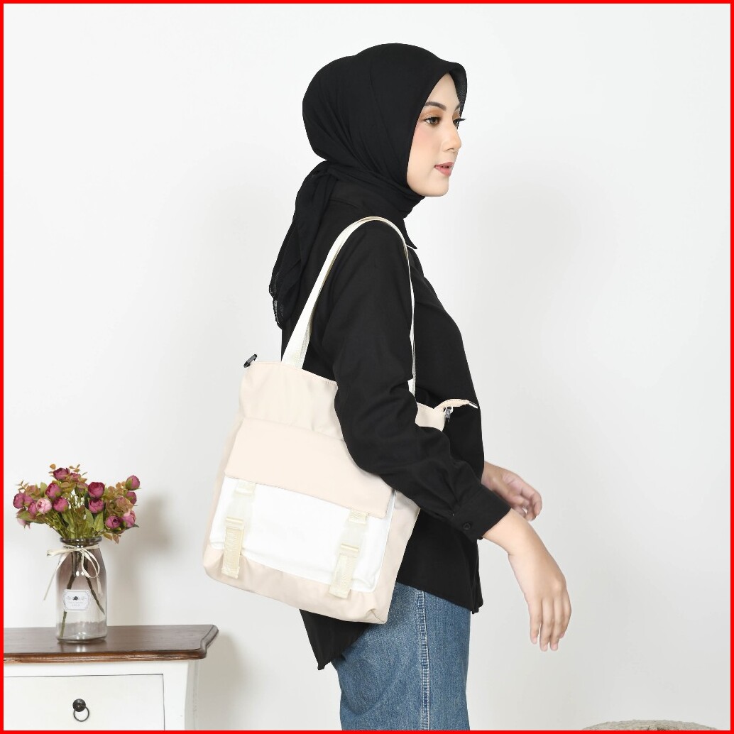 Totebag Wanita Resleting Tas Tote Bag Bisa Slempang Tenteng Bisa Custom Sablon Untuk Seminar Gift