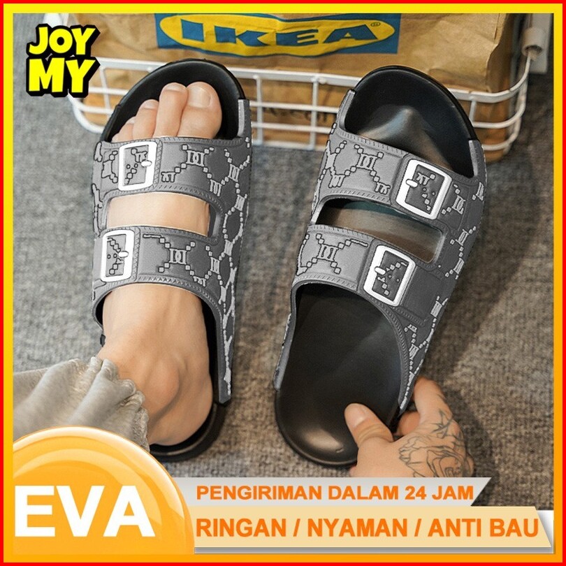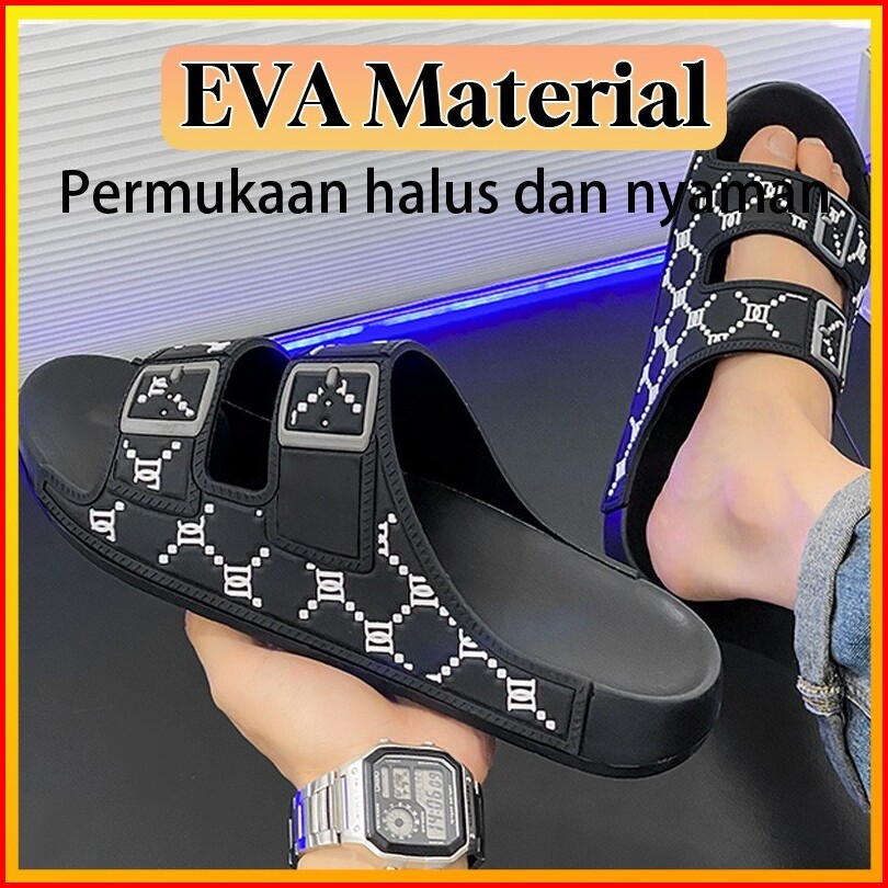 Sandal Pria Slop Casual Keren Terbaru Dewasa Cowok Premium Sendal Karet Pria Tali Slip On Empuk Kekinian Rumah Eva