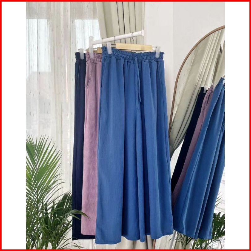 Kulot Highwaist Jumbo Bahan Knit Kulot Wanita Jumbo Tali Serut Muat Bb 100kg