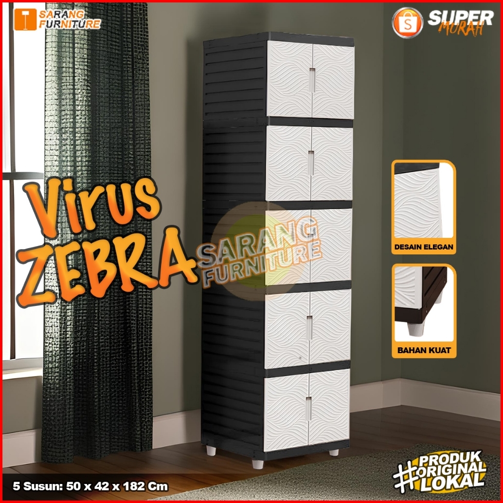 Lemari Plastik Virus Kingdom 5 Susun Lemari Pakaian Minimalis Cabinet Serbaguna - Cream