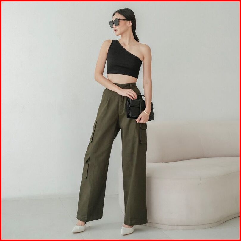 Aynid - Zeya Cargo - Celana Cargo Wanita Highwaist Loose Korean Style Jumbo - Celana Kargo Wanita Twill Stretch Melar