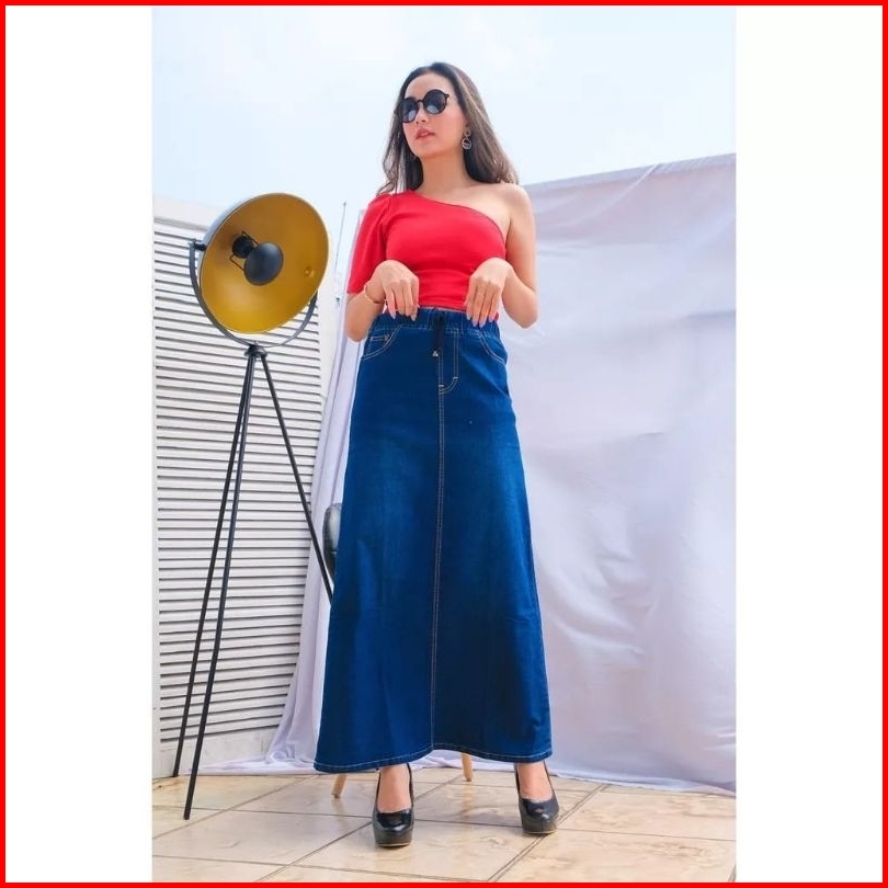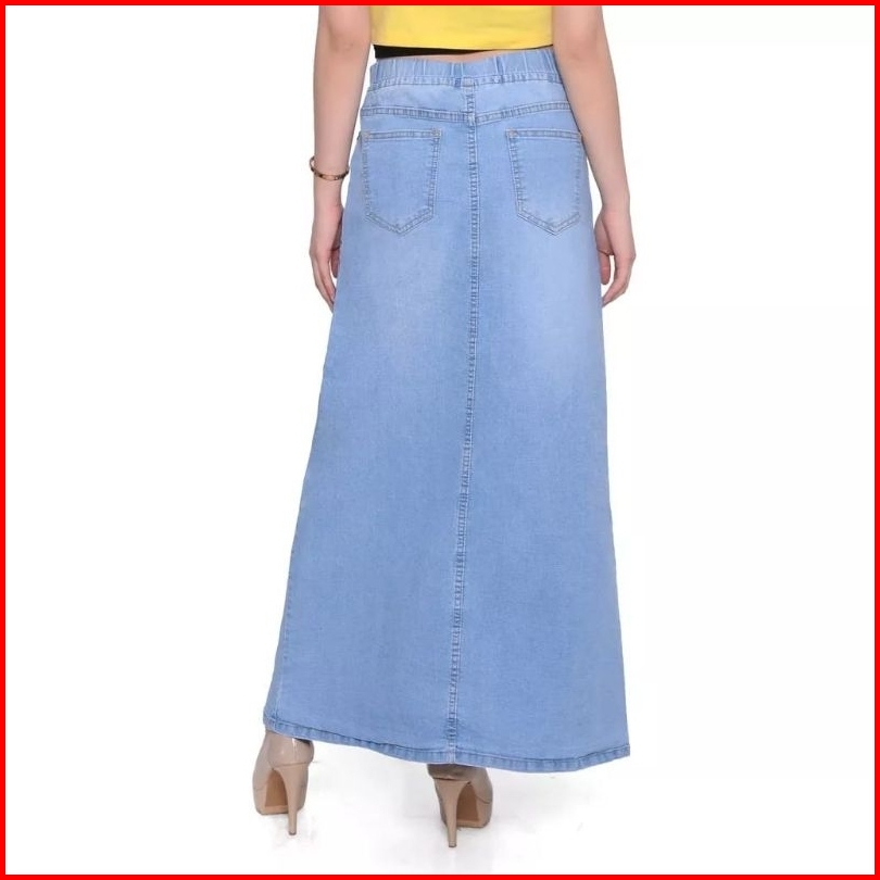 Rok Jeans Panjang Wanita Dewasa - Rok Pinggang Karet Jumbo Bigsize Street Melar 27-42