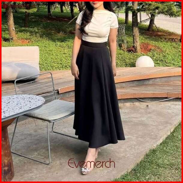 Audy Skirt - Korean Loose Maxi Skirt Rok Wanita Anti Kusut Polyester - Rok Flare Wanita - Rok Basic