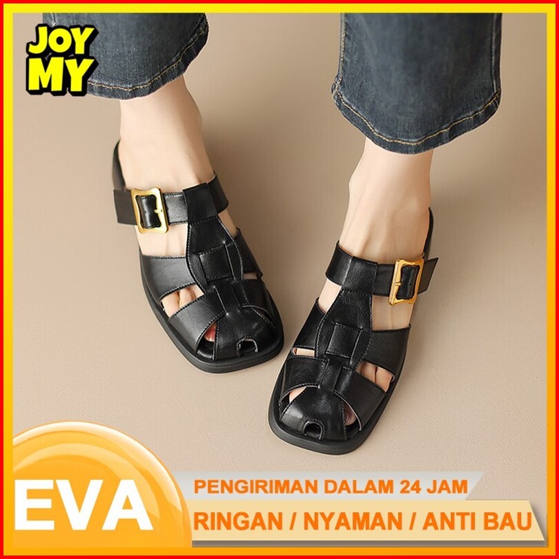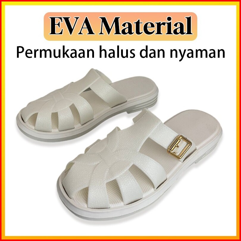 Joymy Sandal Pita Polkadot Flat Shoes Fashion Korea Model Pita Sandal Karet Ribbon Polkadot