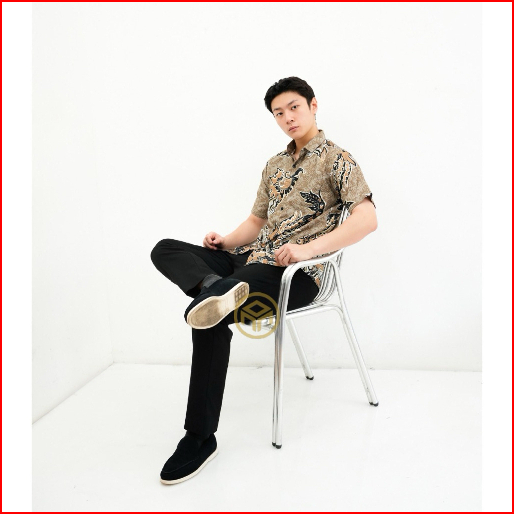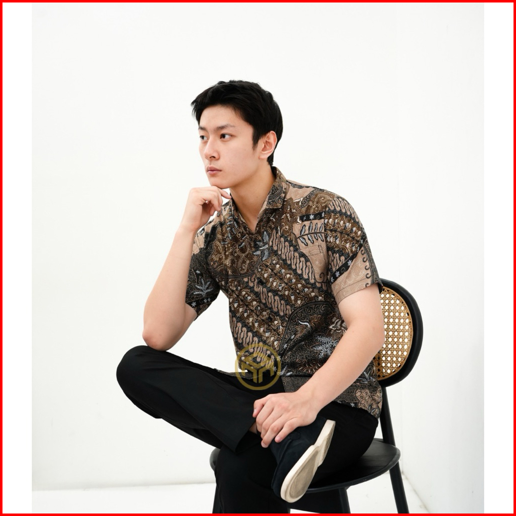 Monalisa Batik- Karamel Kemeja Batik Pria Lengan Pendek Modern Batik Hem Pria Best Seller Hight Quality