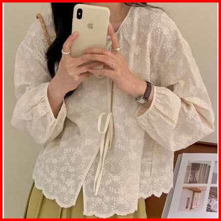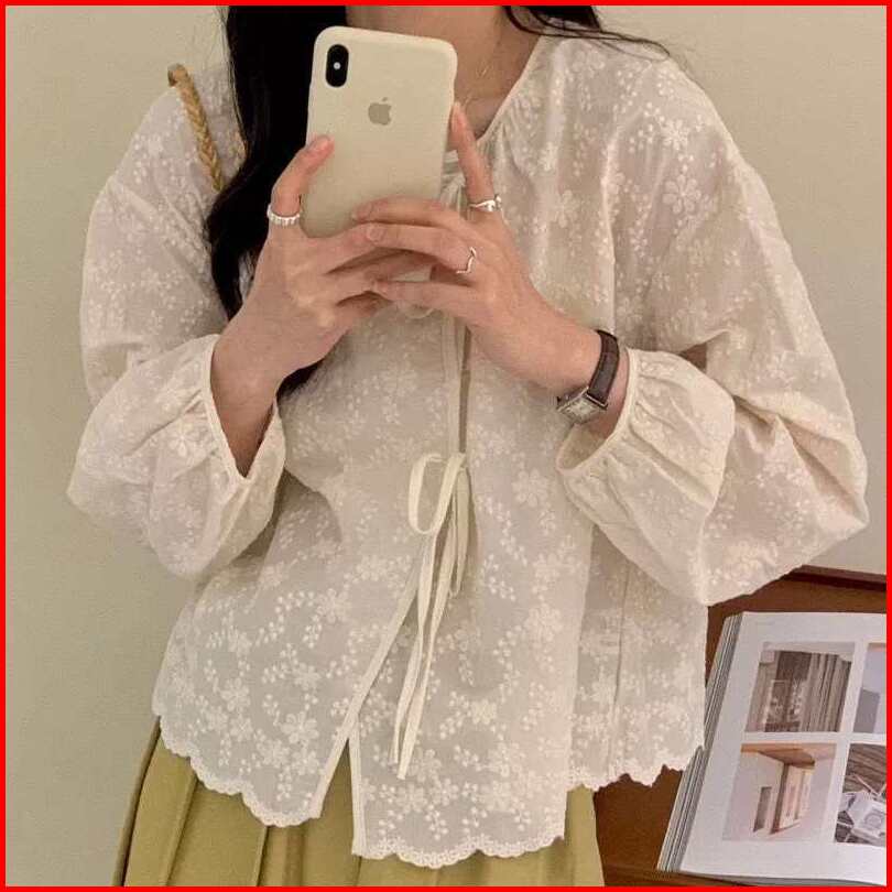 Kouyoo Blouse Atasan Wanita Blouse Motif Bunga Hijab Friendly Korean Style Lengan Panjang