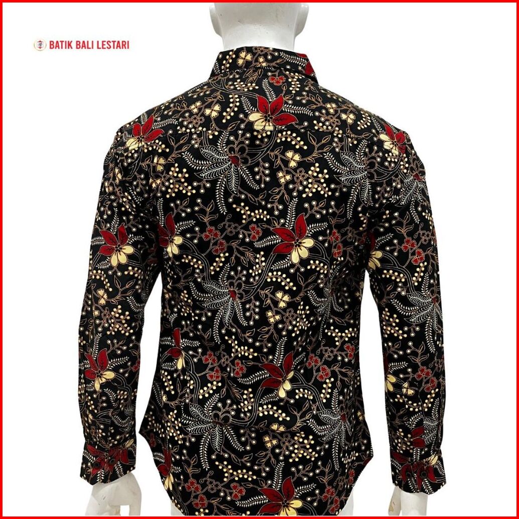 Batik Bali Lestari Kemeja Slimfit Lengan Panjang Hitam Q245