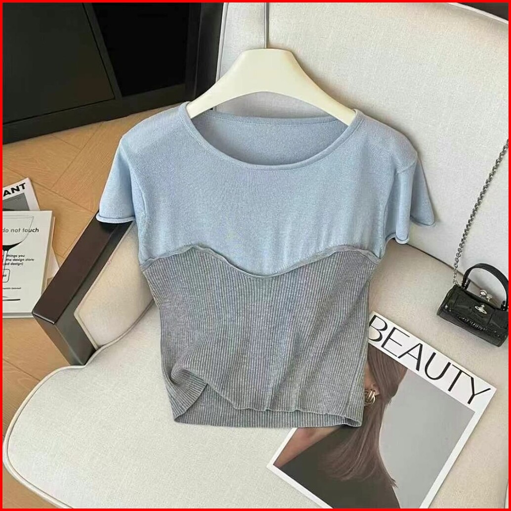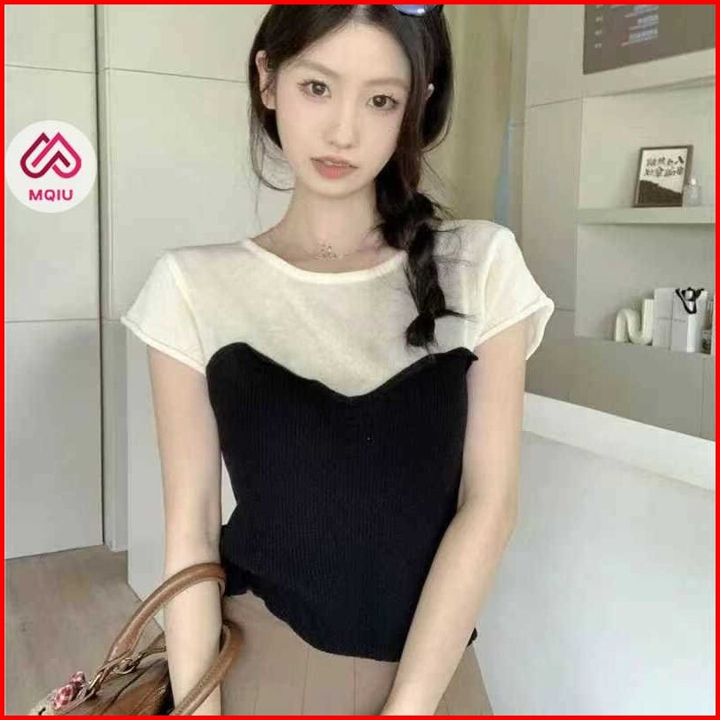 Mqiu - Baju Blouse Knit Top Atasan Wanita Korean Style 2 Warna Bj2