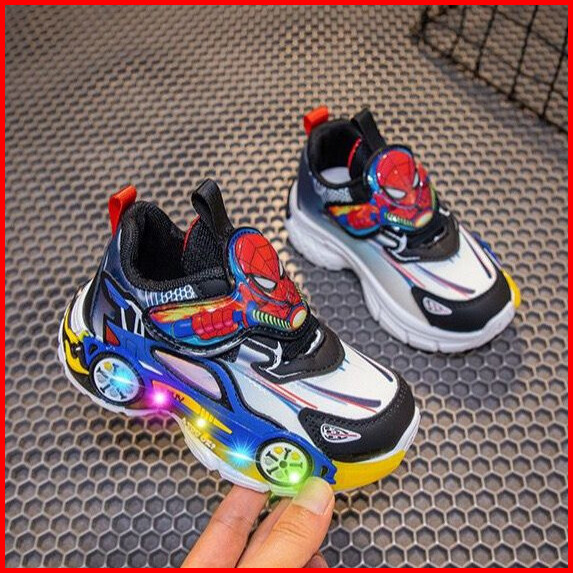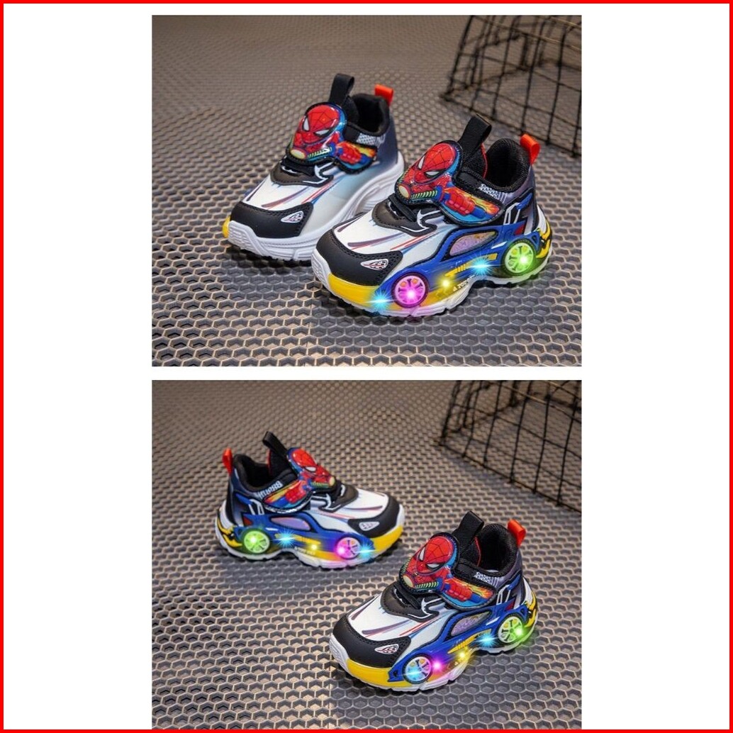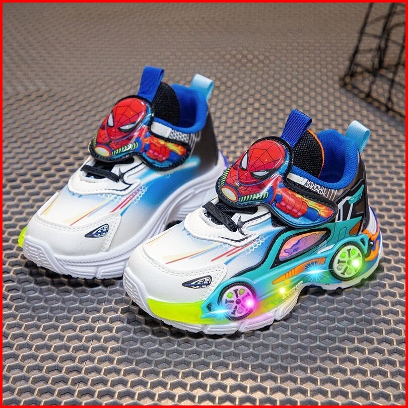Loli-jkt Sp- Spide Sepatu Sneaker Anak Led Spiderman Mobil Perekat Besar Size 23-36