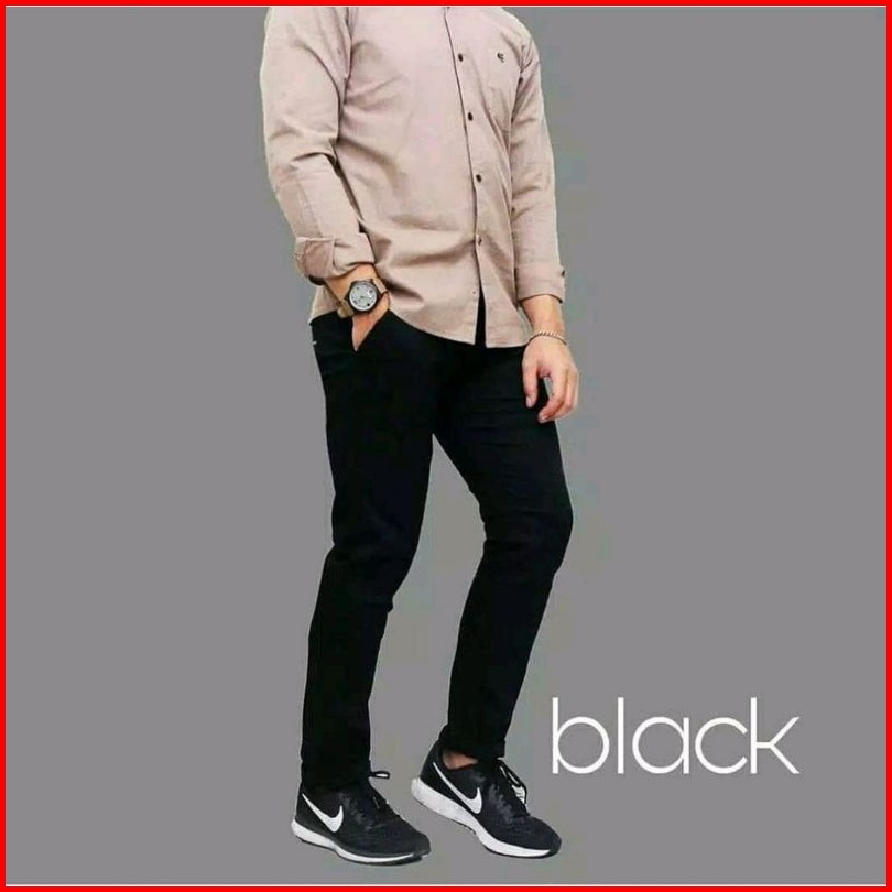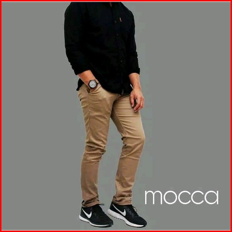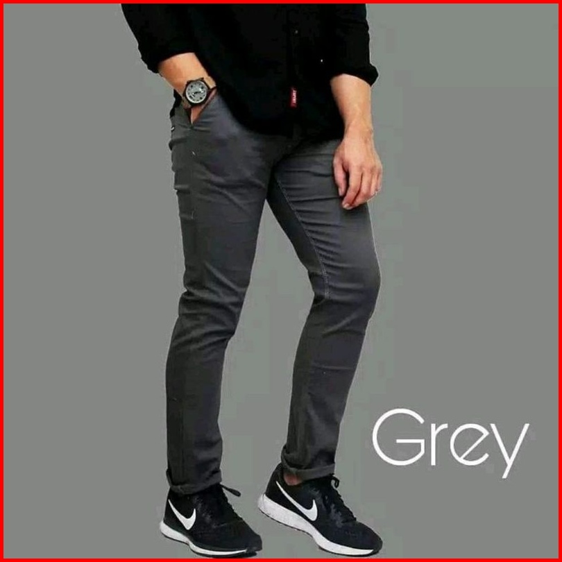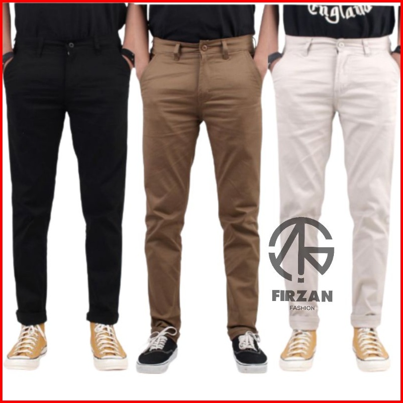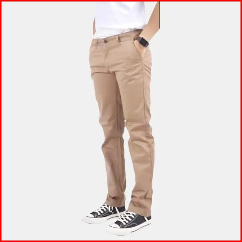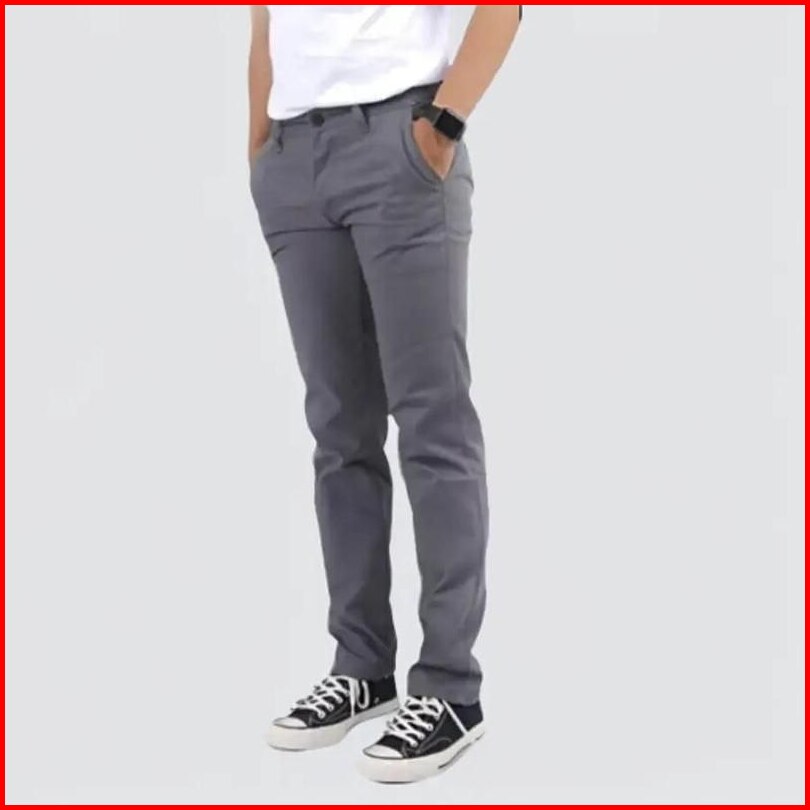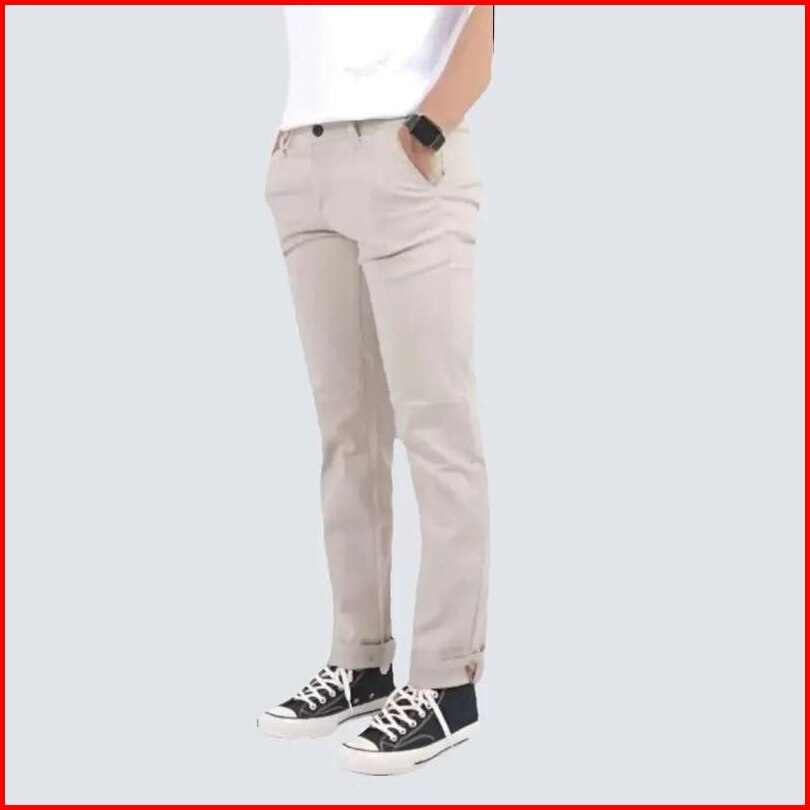 Celana Chino Panjang Pria Slimfit Kerjaharian Santai Casual Formal Hitam Abu Cream Mocca Size 27-38