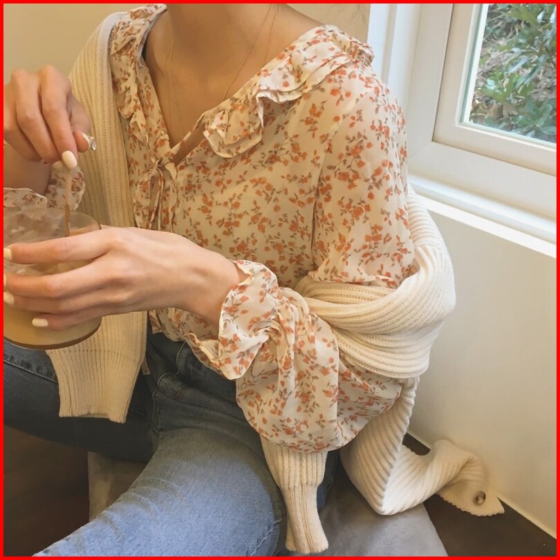 Air Swimwear Xf008 Kemeja Sifon Blouse Wanita Korea Blouse Sifon Lengan Panjang Blus Wanita Musim Panas Casual Blouse Mo