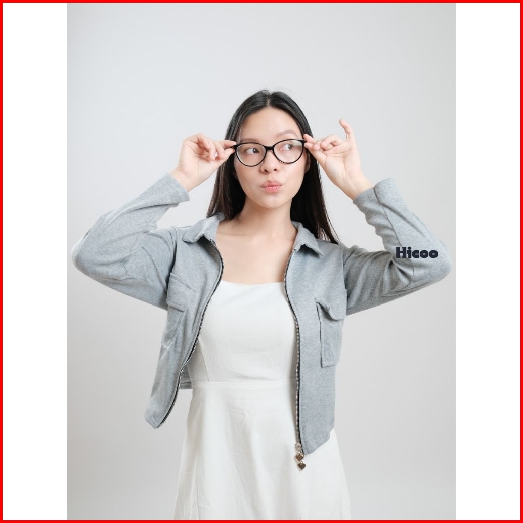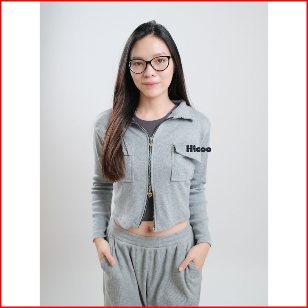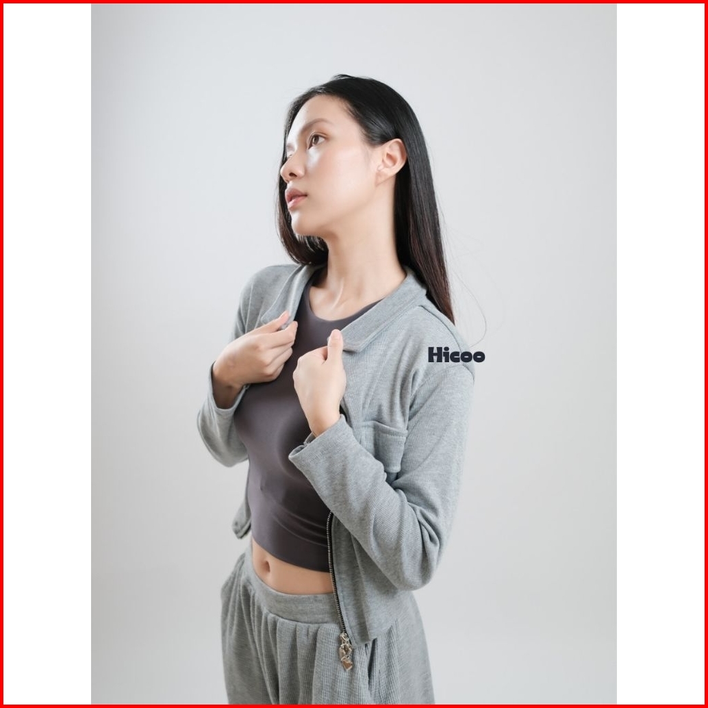 Hicoo Blouse Knit Premium Wanita Crop Top Double Zipper Lengan Panjang Korean Style