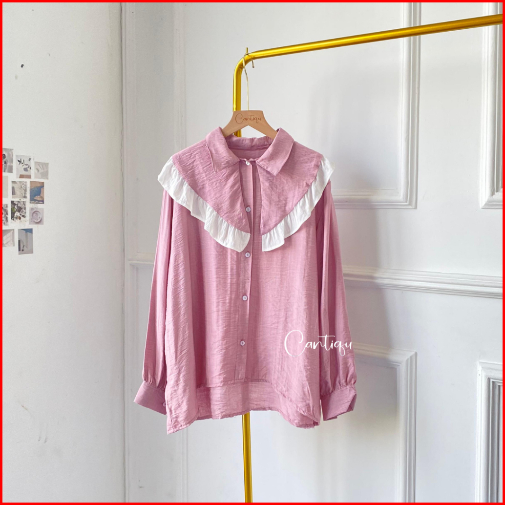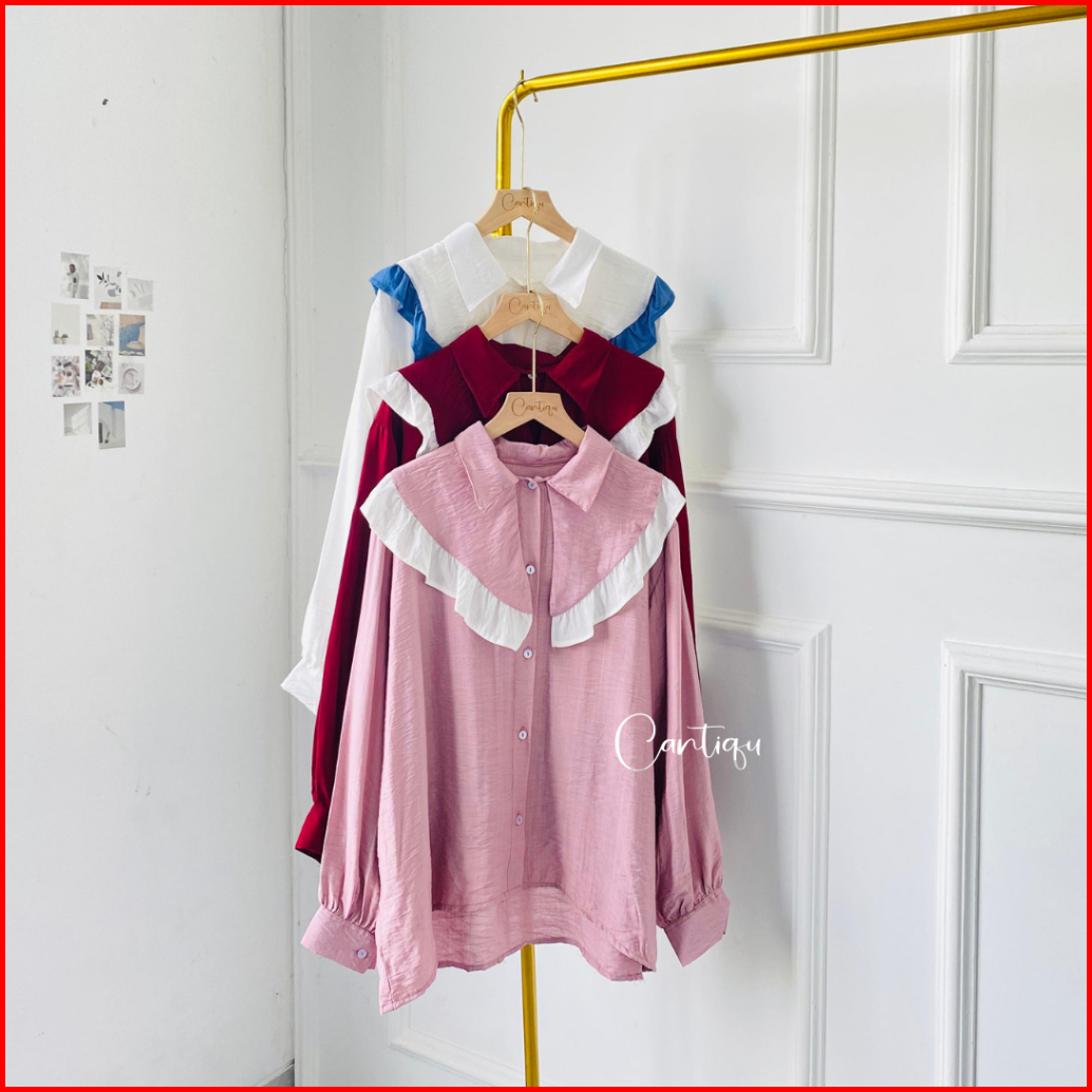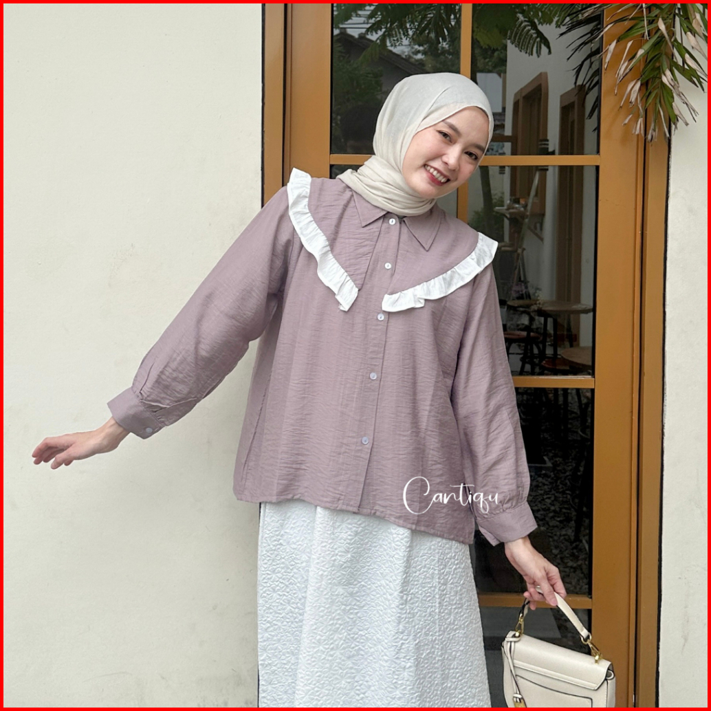 Cantiqu - Blouse Ruffle Pololinen Valla Atasan Kemeja Wanita