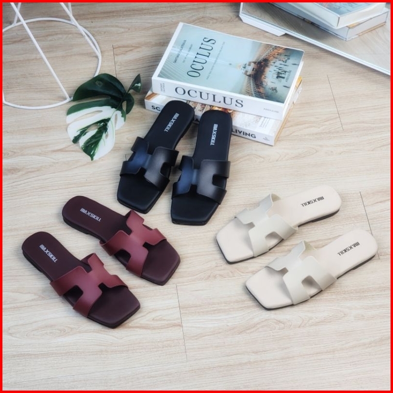 Maxskill Hanna Sandal Teplek Wanita Sendal Flat Cewek Empuk