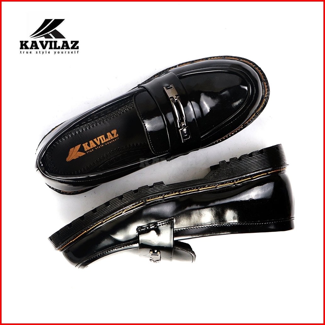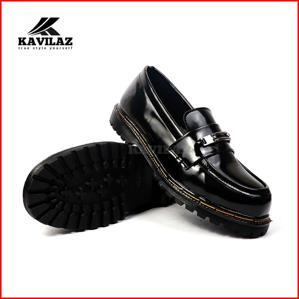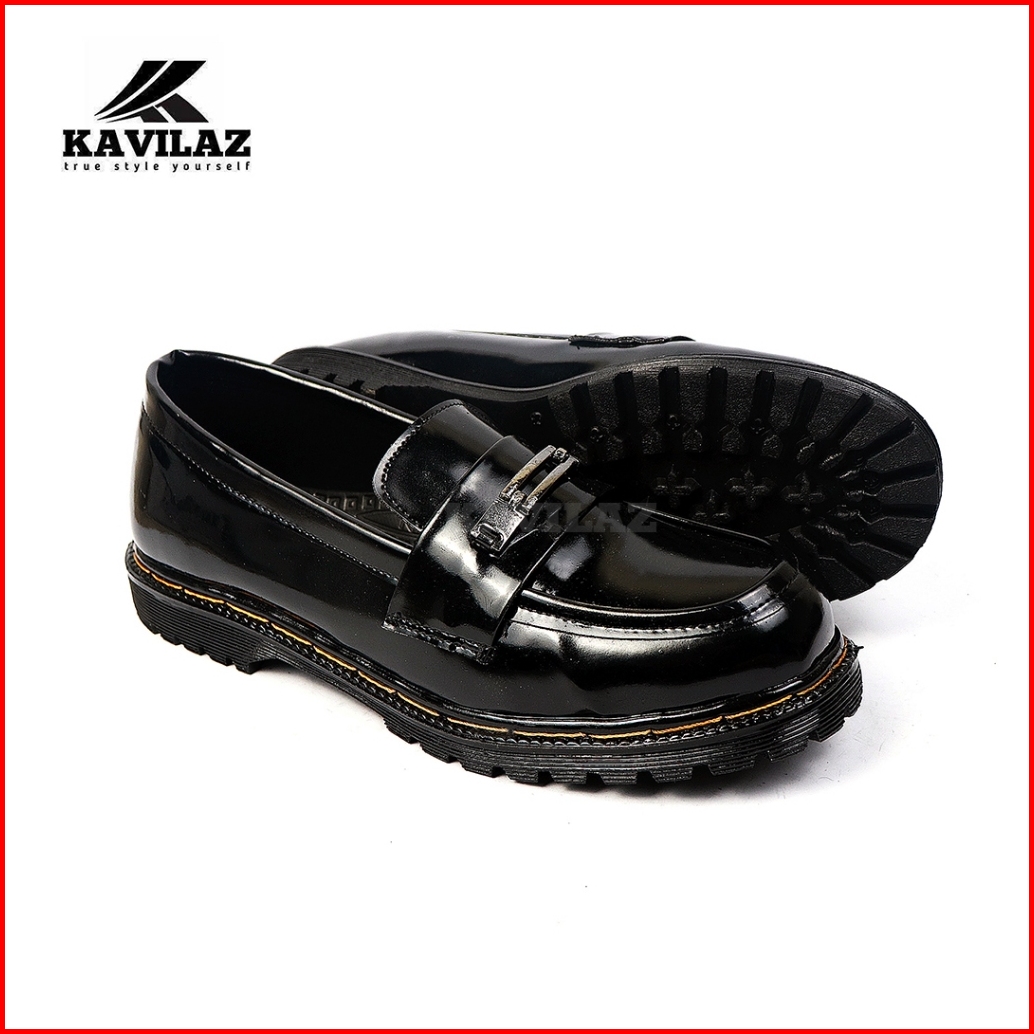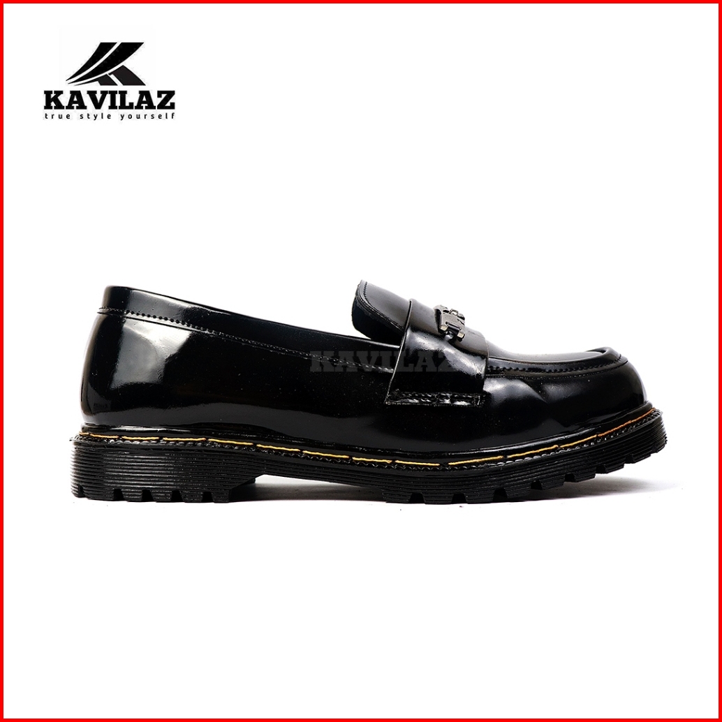 Kavilaz True Style Yourself Sepatu Pria Loafer Docmart Slop Black Glossy Kode Z16