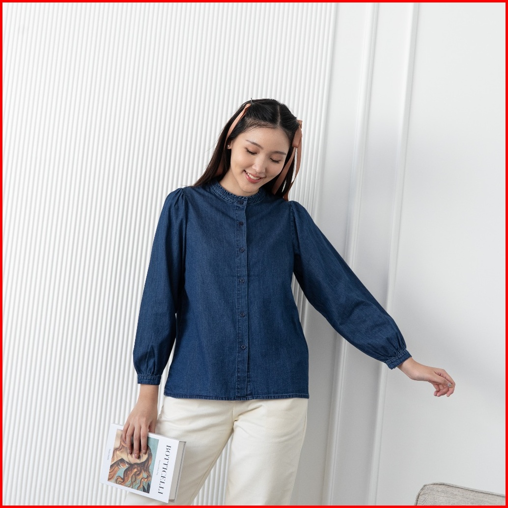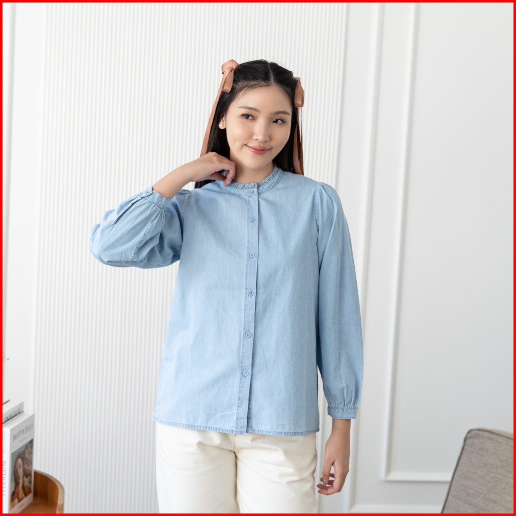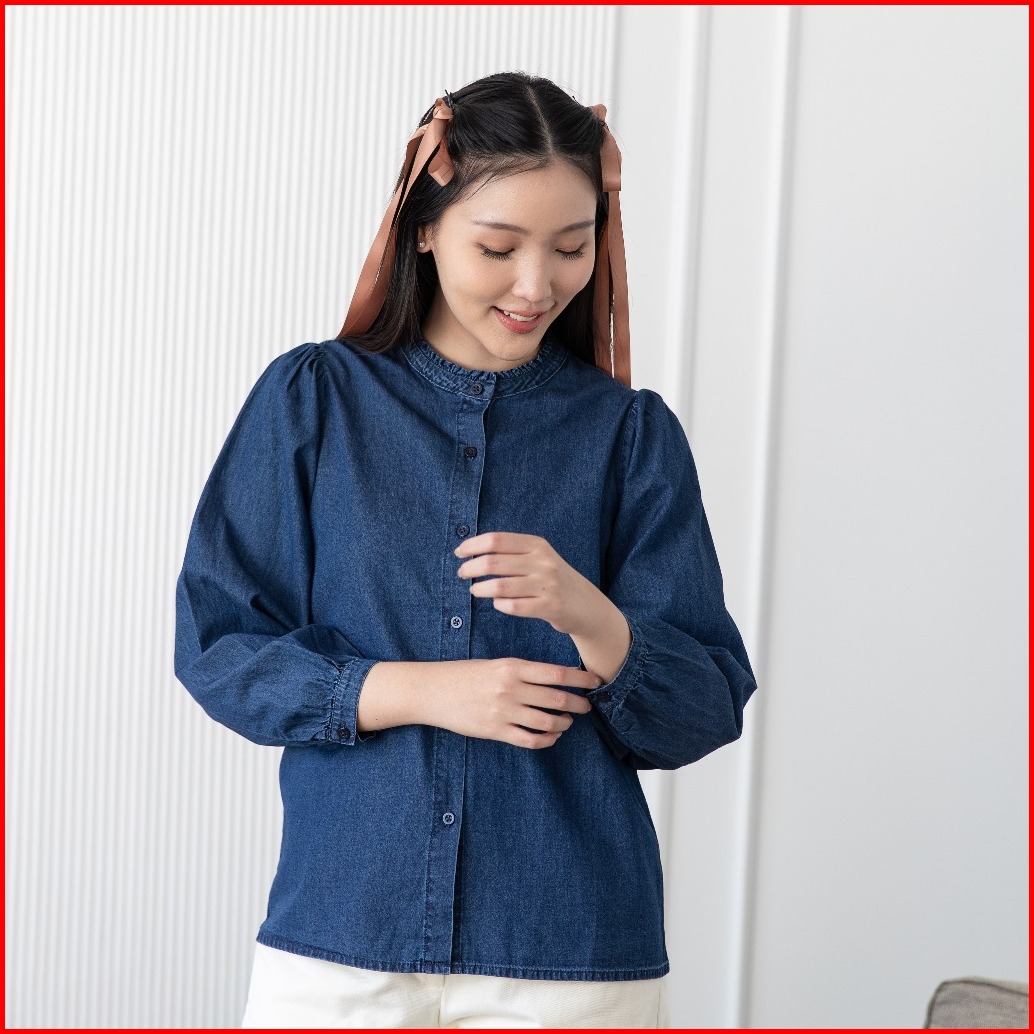 Ultraviolet Song Denim Shirt 314 2 Warna - Atasan Blus Wanita Korean Style