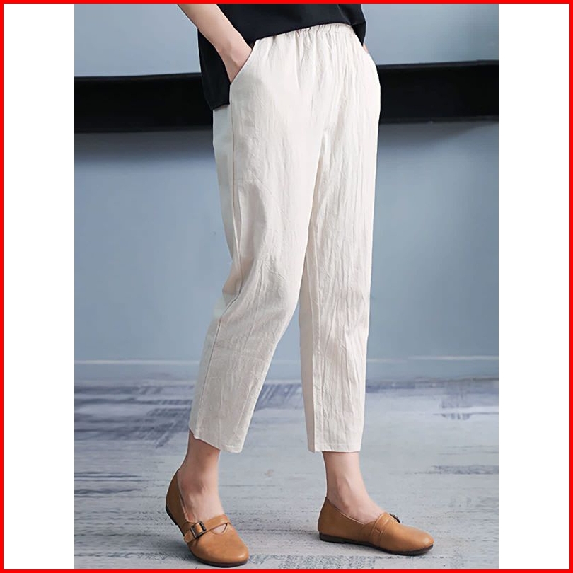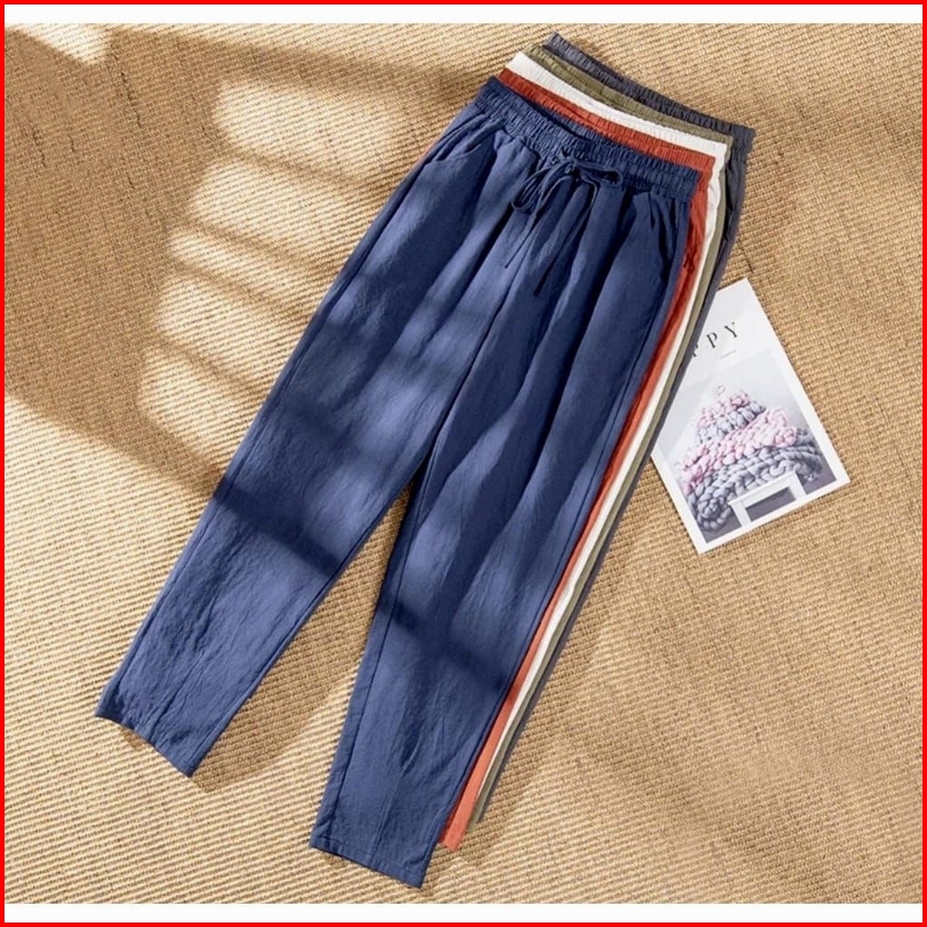 Celana Panjang Wanita Premium Korean Style Bahan Linen Rami