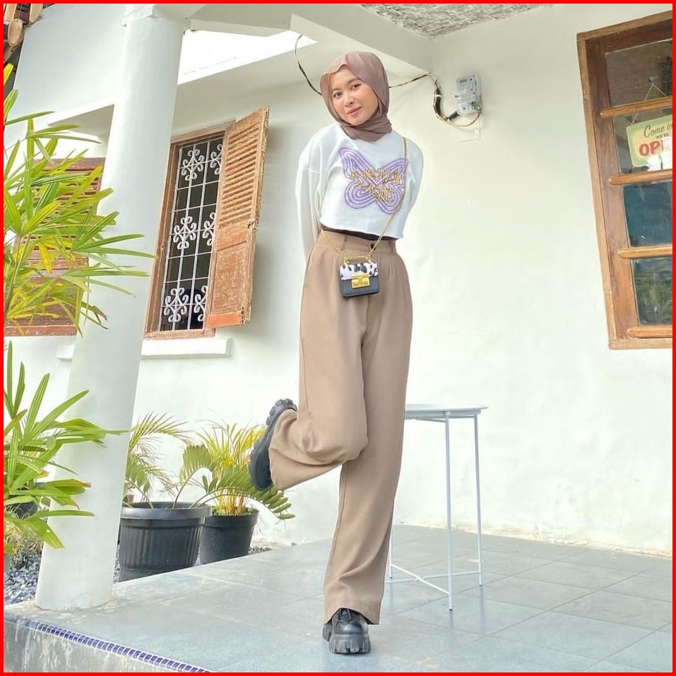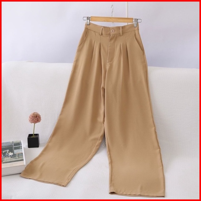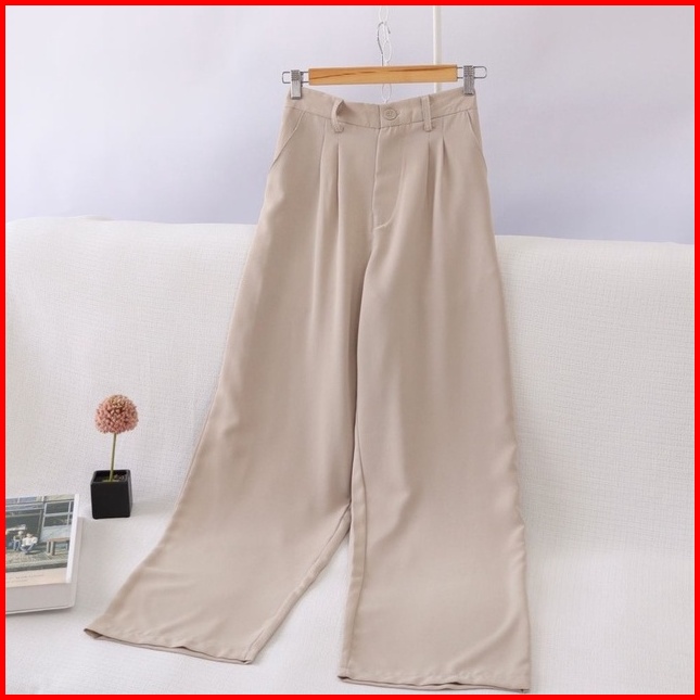Loose Pants Trousers Jumbo Highwaist Wanita Anti Kusut - Celana Kulot Highwaist Wanita Bahan Jatuh Celana Kantor Formal