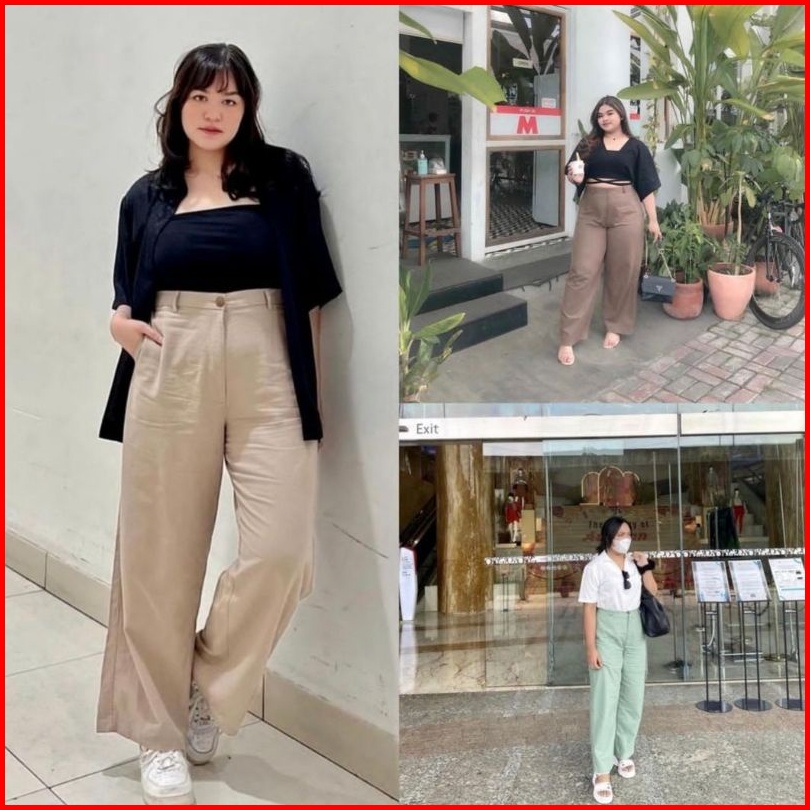 Celana Kulot Highwaist Wanita Jumbo Celana Kantor Wanita Formal Celana Kerja Pinggang Karet Jumbo
