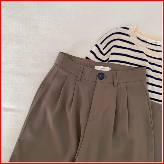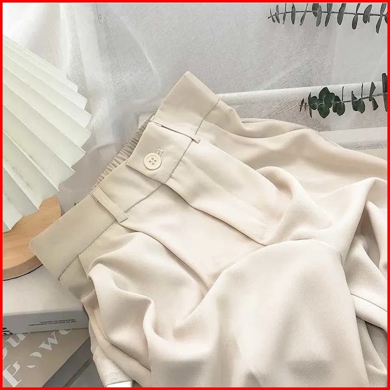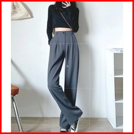 Wanita Lurus Kesembilan Celana Jas Korea Pinggang Tinggi Celana Longgar Tipis Kasual Kaki Lebar