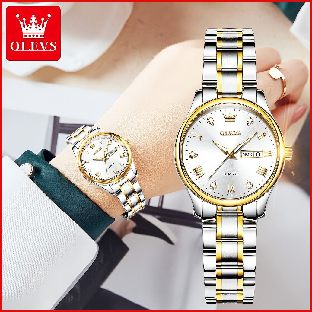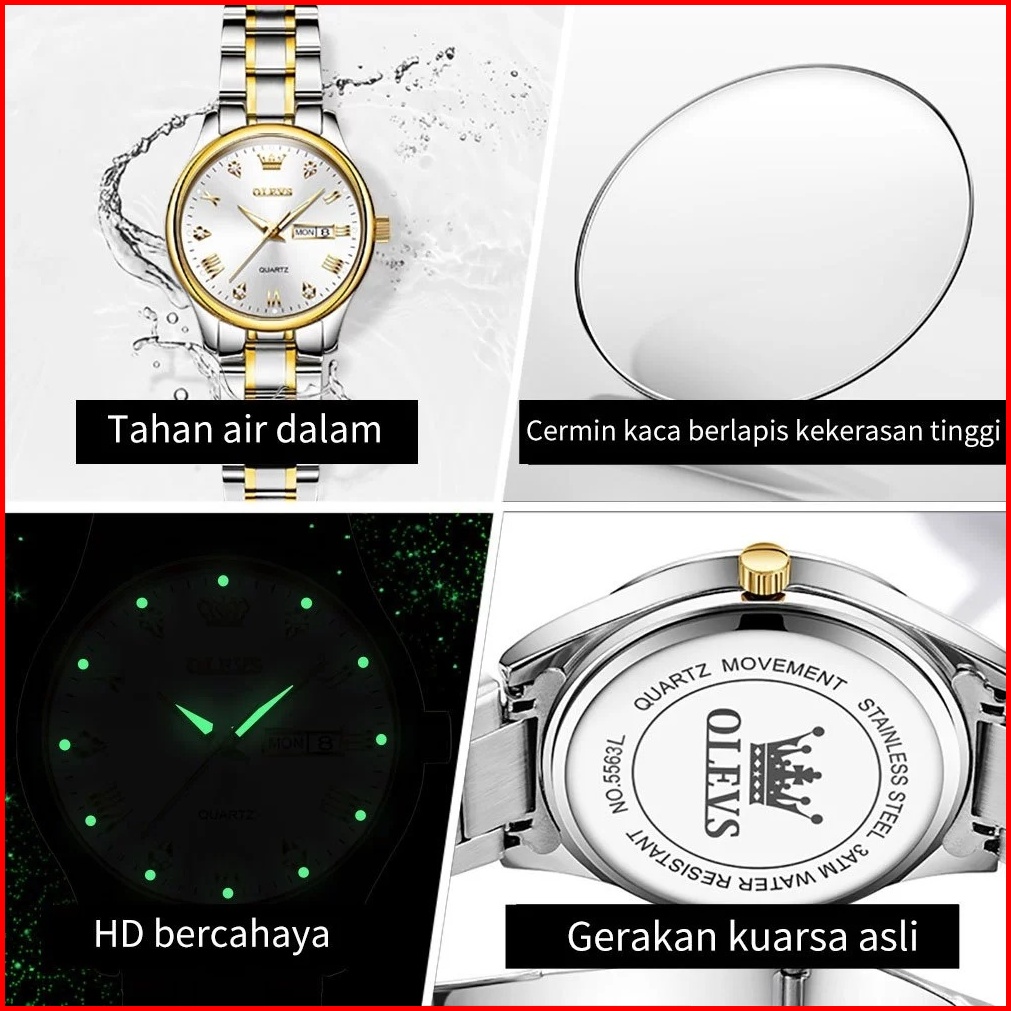 Olevs Jam Tangan Wanita Anti Air Original Kalender Bercahaya Bisnis Stainless Steel Analog Watch
