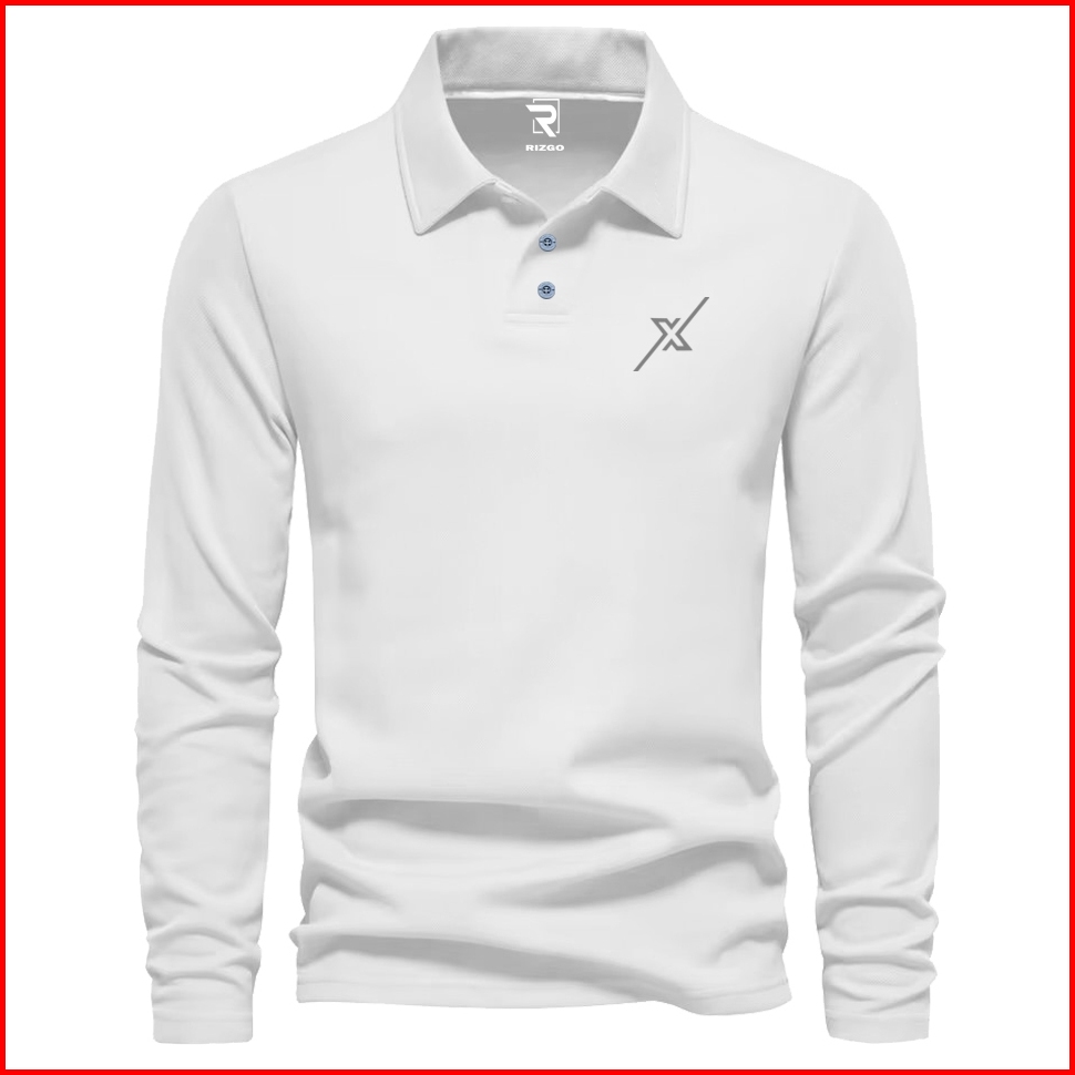 Rizgo - T Shirt Polo Lengan Panjang X New Motif Silver Distro Kerah T-shirt Pria Wanita Tebal Baju Keren Bahan Katun Piq