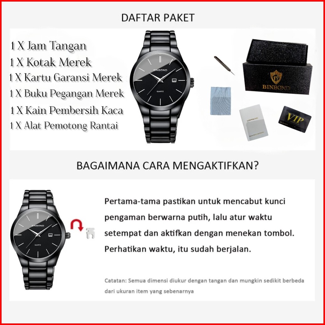 Binbond Jam Tangan Pria 100 Original Anti Air Business Kasual Kalender Analog Stainless Steel T077