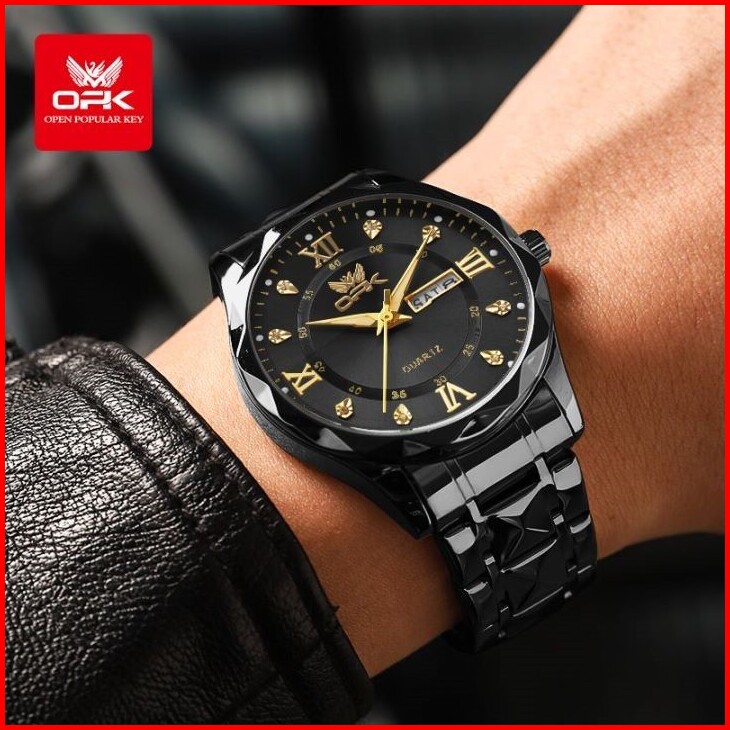 Jam Tangan Opk Pria 6023 Anti Air 100 Original Kalender Mewah Analog Stainless Steel Men Watch