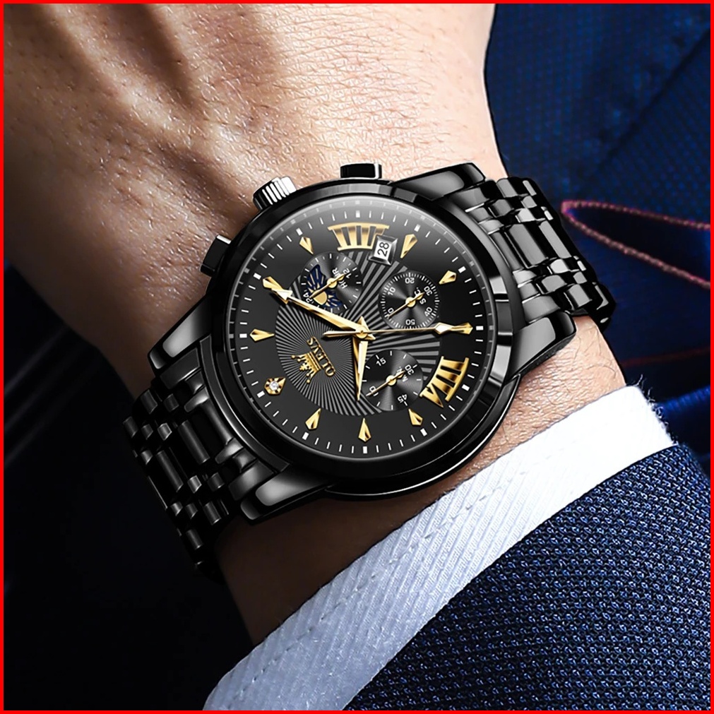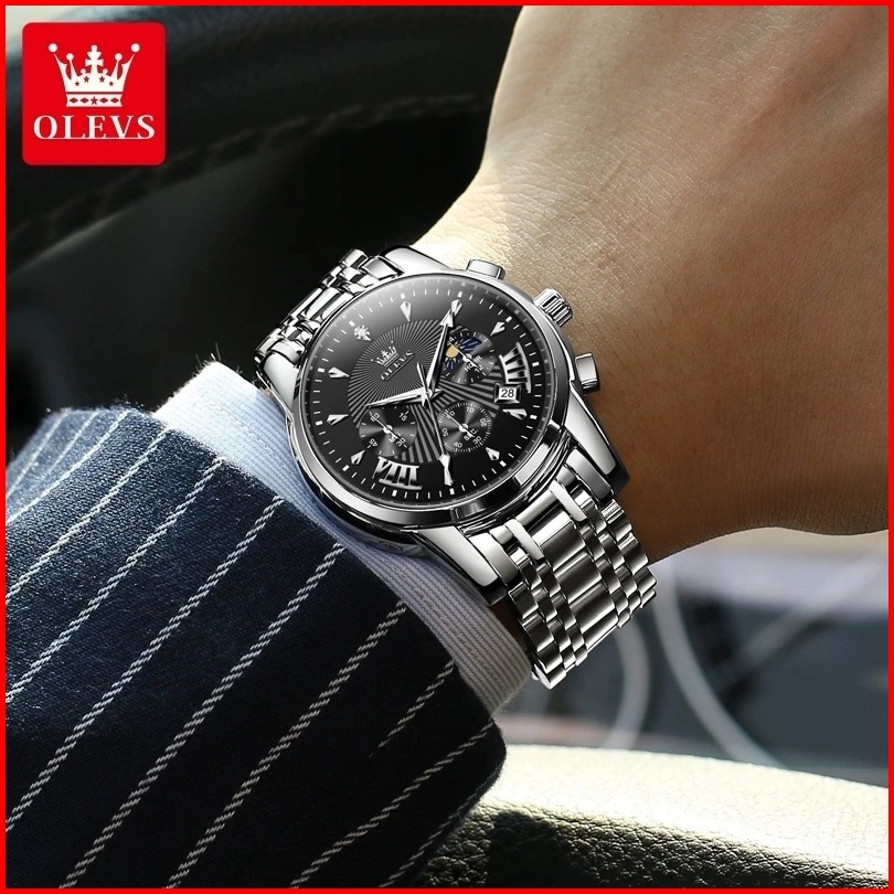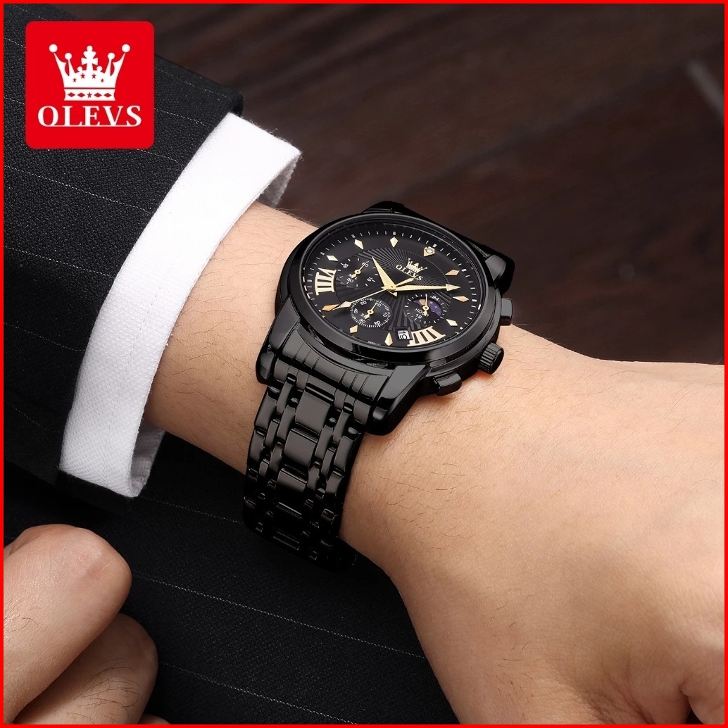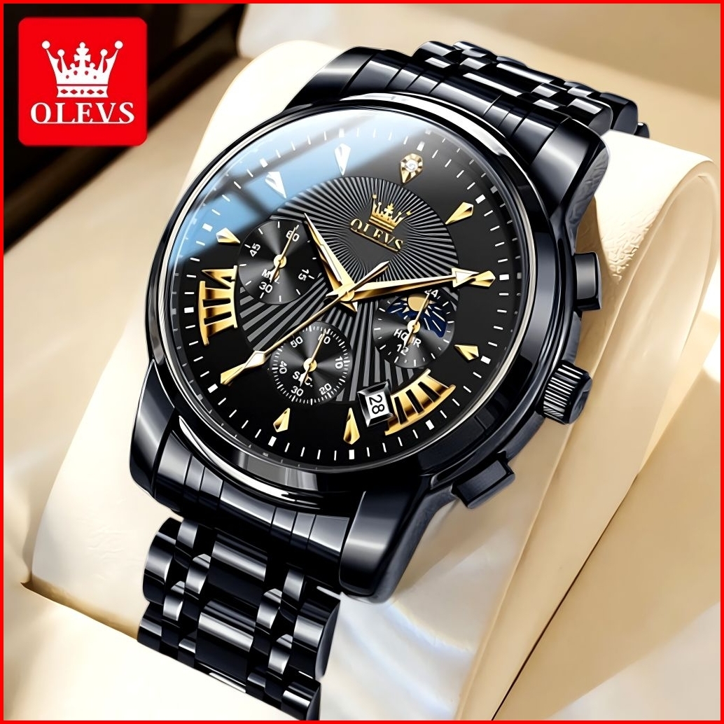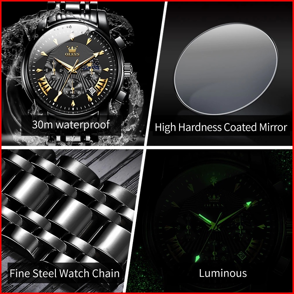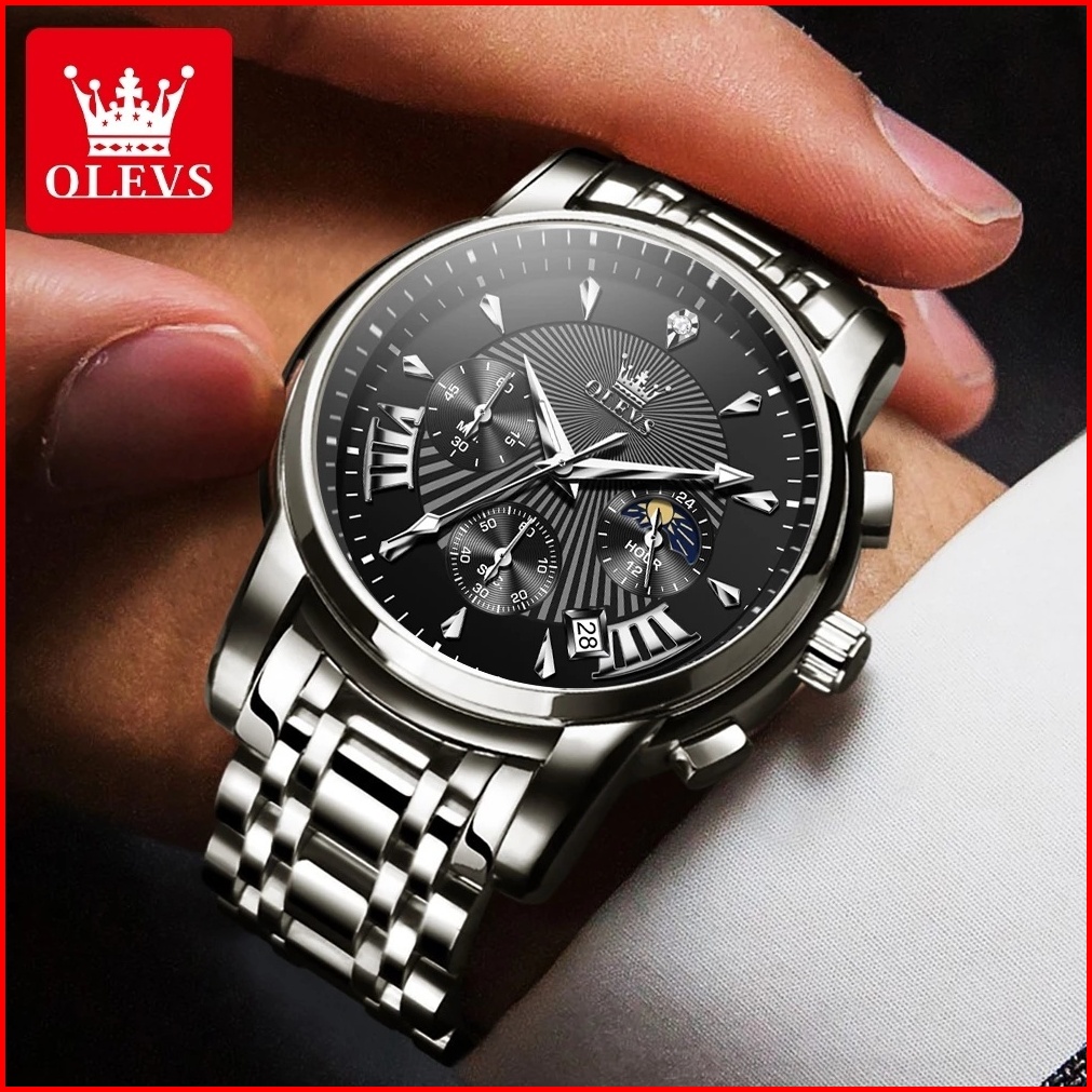 Jam Tangan Olevs Pria Anti Air Original Stainless Steel Chronograph Analog Kuarsa Luxury Men Watch