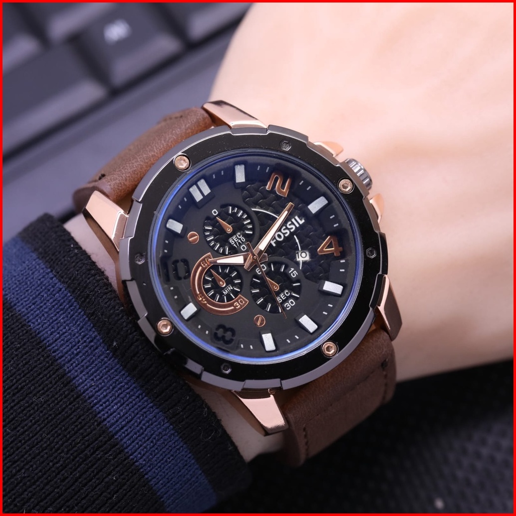 Terlaris Jam Tangan Pria F019l Tanggal Aktif Crono Variasi Tali Kulit Free Box Batrai