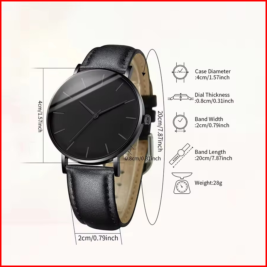 4pcs Jam Tangan Pria Quartz Dengan Dial Bulat Dan Tali Kulit Set Kasual Dengan Kalung Dan Gelang Cocok Untuk Aktivitas O