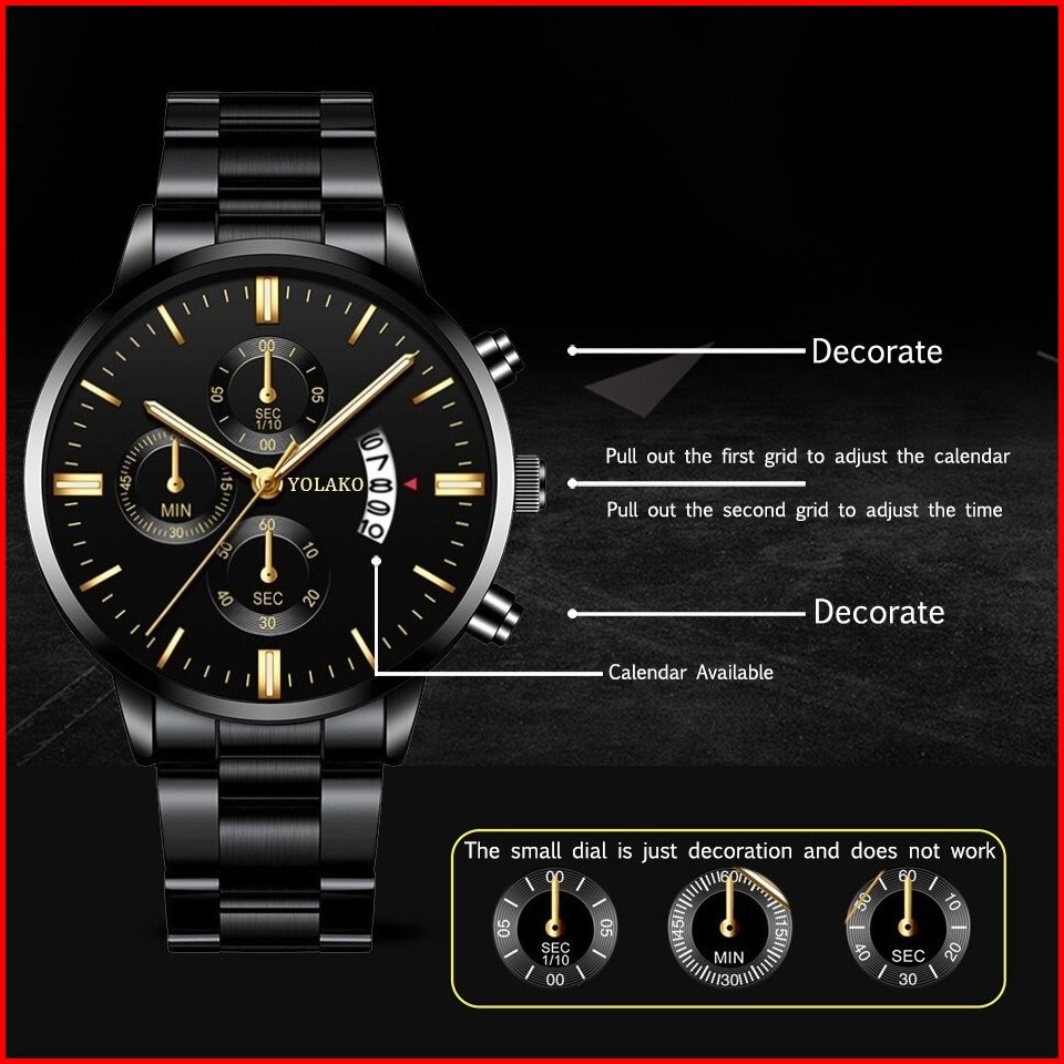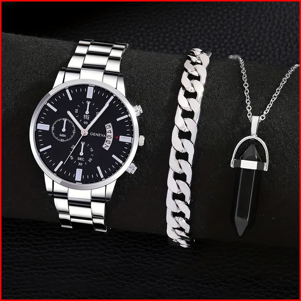 3pcs Jam Tangan Pria Jam Tangan Pria Berbahan Baja Set Gelang Dan Kalung Hadiah Ulang Tahun Hadiah Liburan